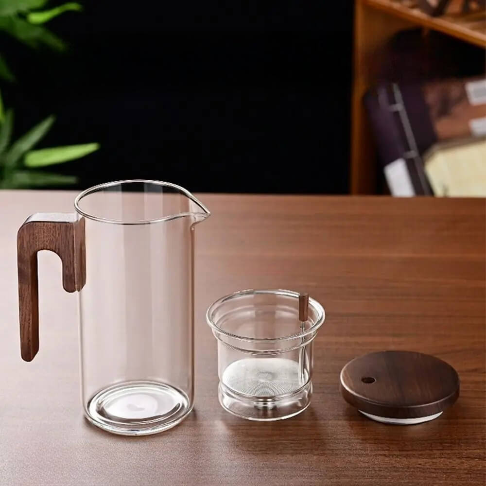 Bule com Infusor de Chá combina elegância e funcionalidade em um único produto. Feito de vidro durável e madeira resistente, este bule é perfeito para preparar chás e infusões de forma prática e fácil.