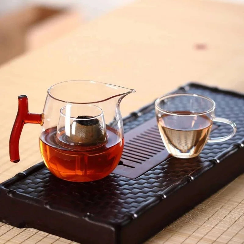Bule de Vidro Rubro possui um infusor para chá, permitindo uma infusão perfeita de folhas soltas. Confeccionado com materiais de alta qualidade, é durável e resistente a altas temperaturas.