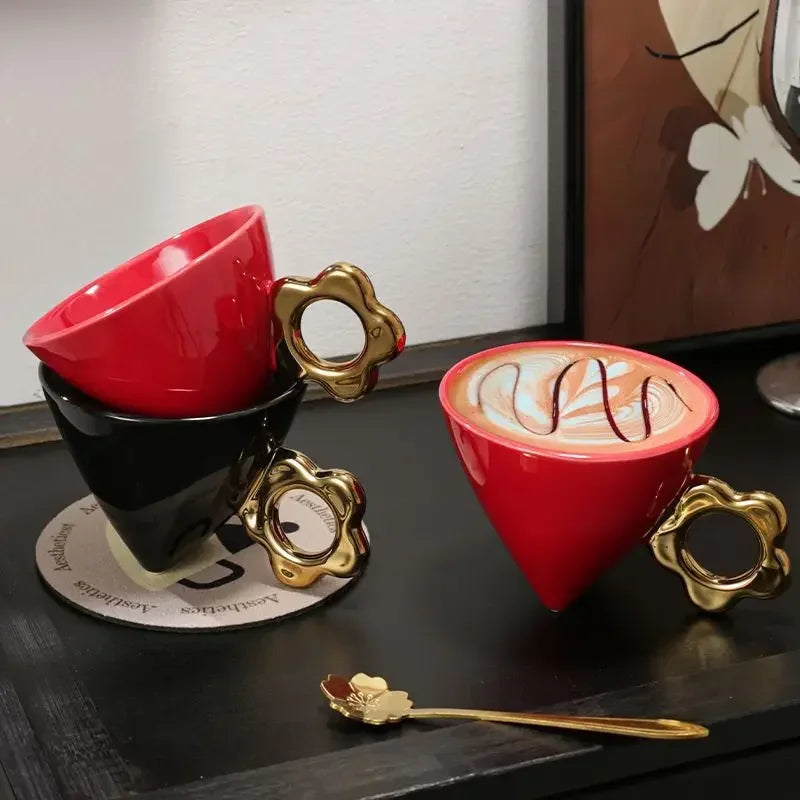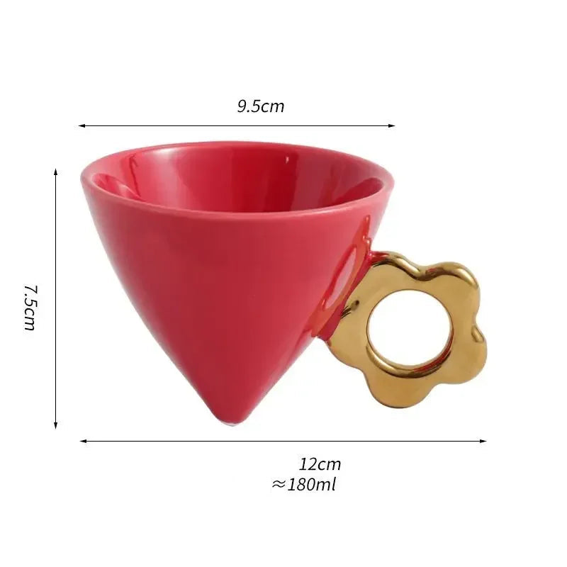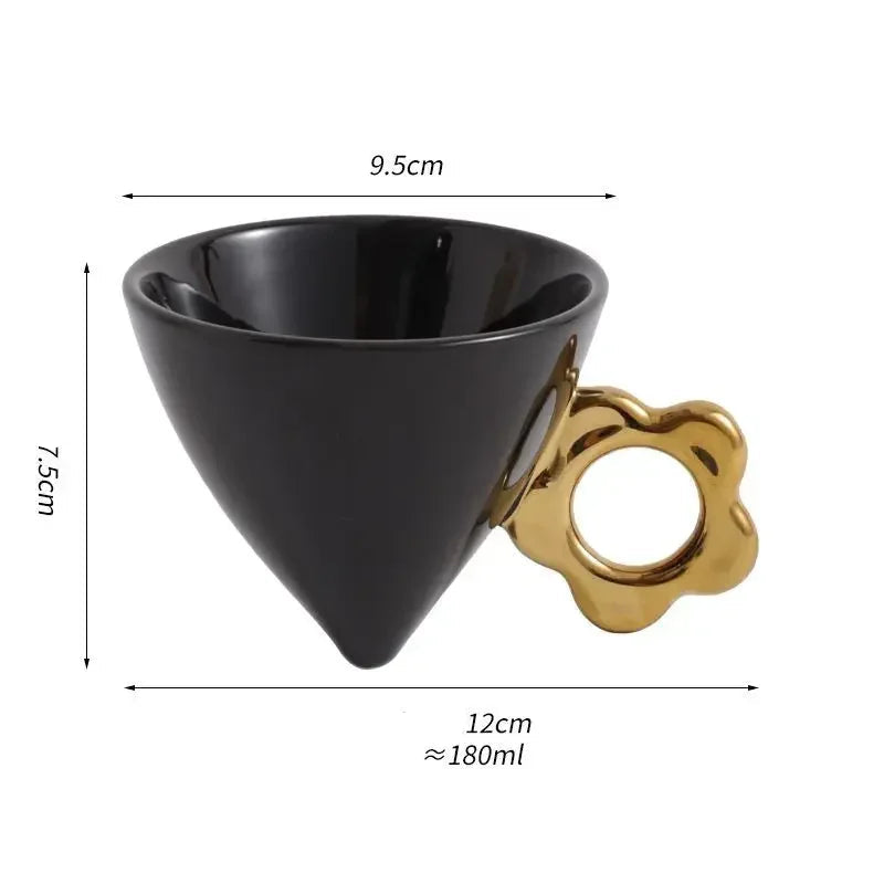 Caneca em Forma de Cone com Alça Dourada