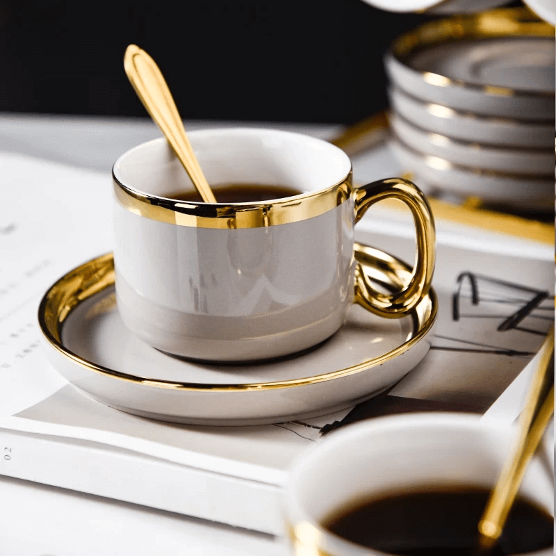 Caneca de Porcelana com Pires, feita com porcelana de alta qualidade e um pires elegante, essa caneca é perfeita para quem busca praticidade e sofisticação. Desfrute de momentos relaxantes com um toque de elegância.