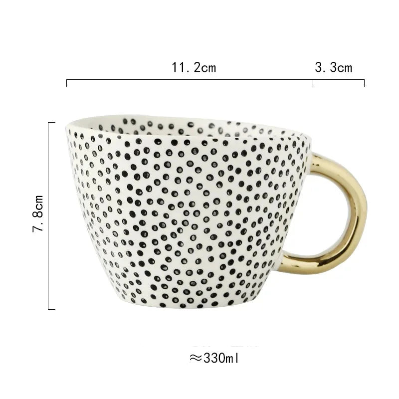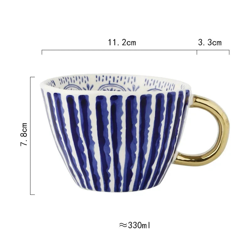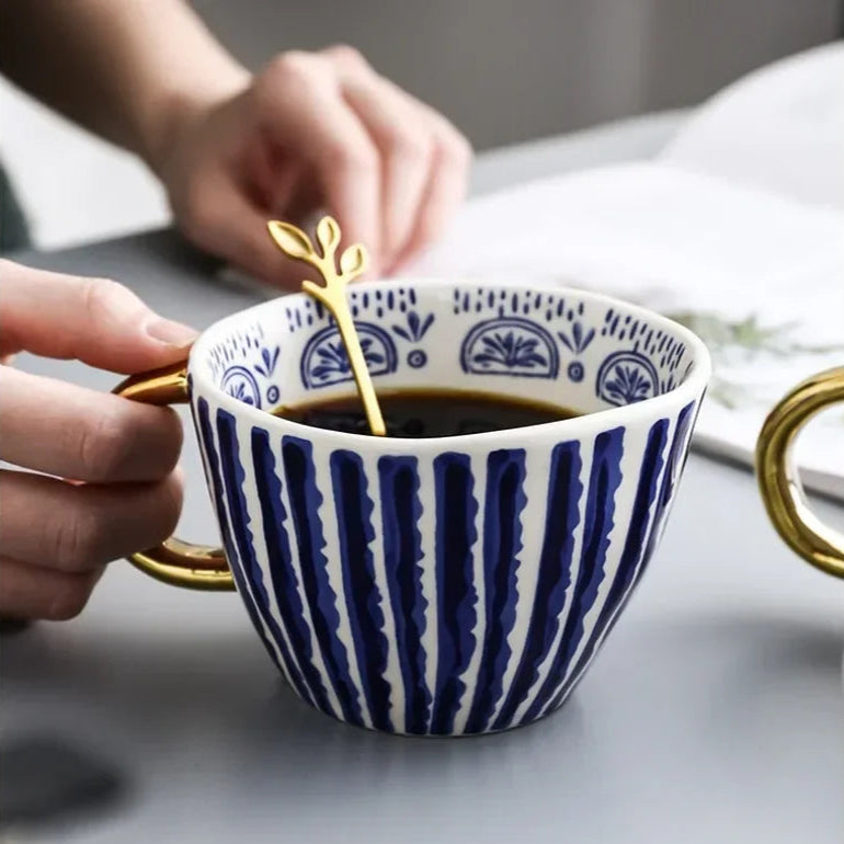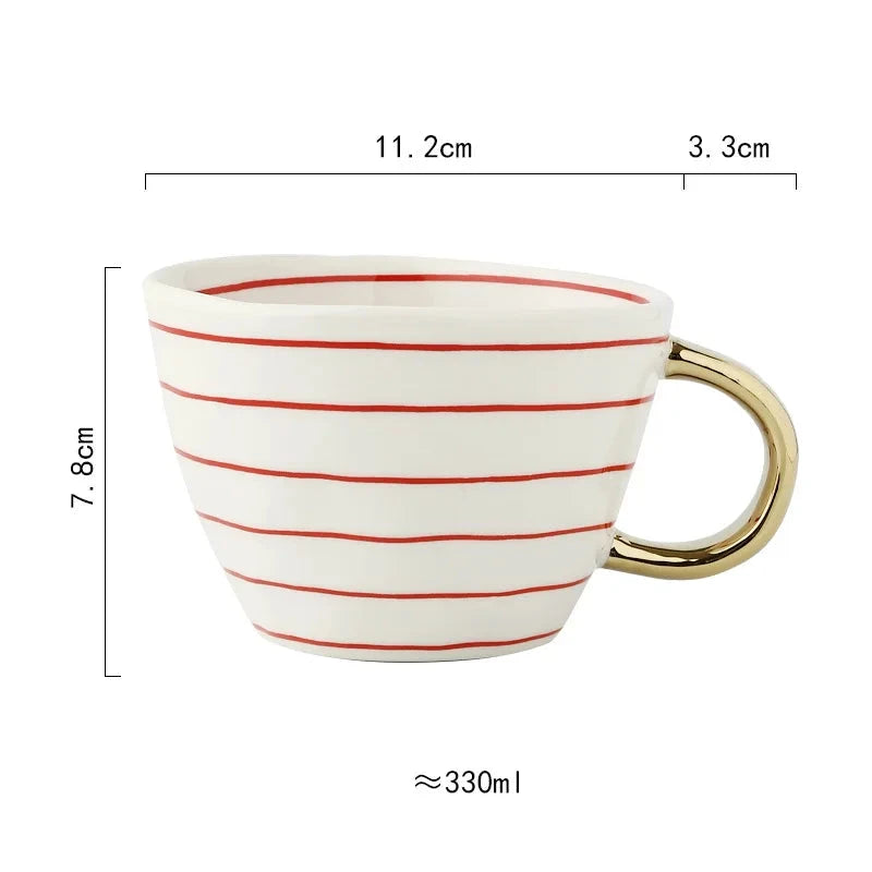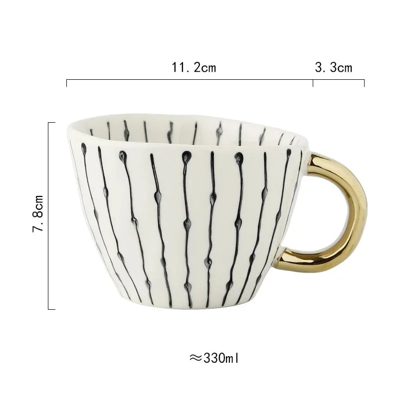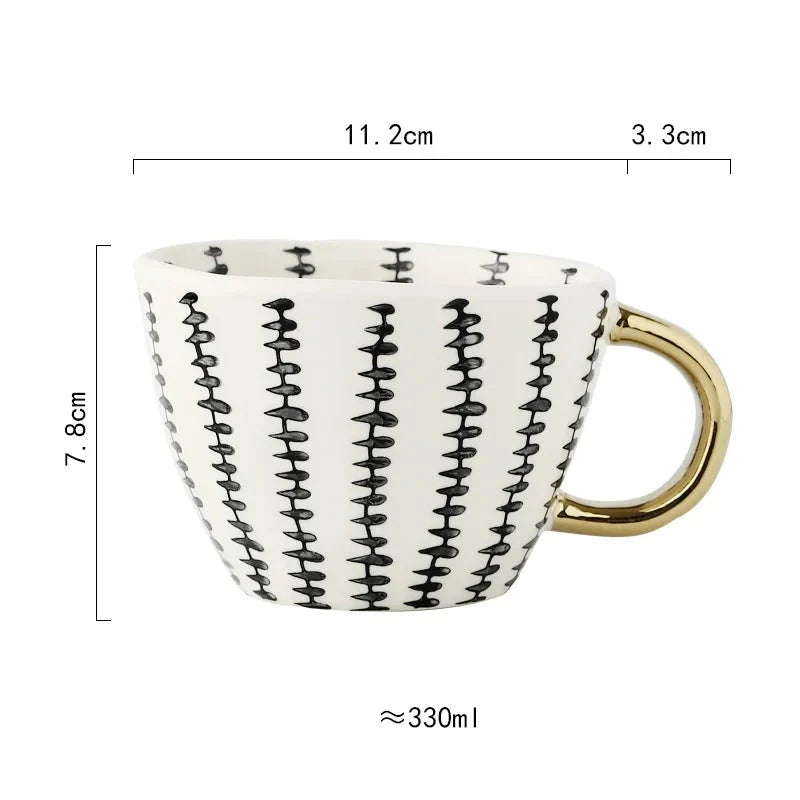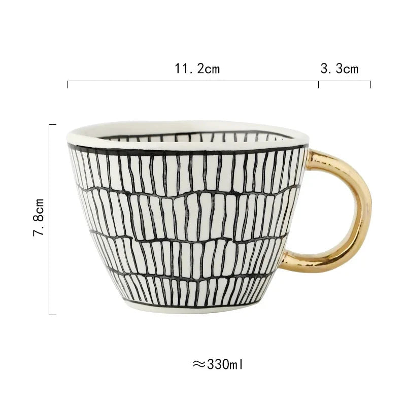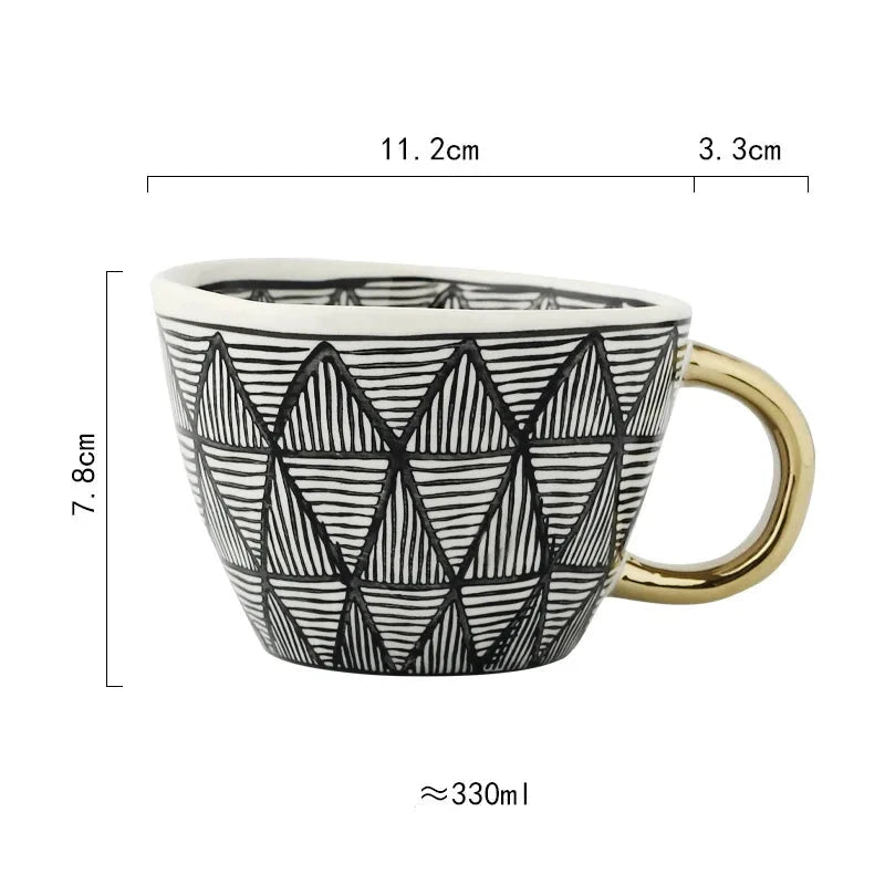 Caneca de Cerâmica de 330ml apresenta um design geométrico pintado à mão, que une arte e funcionalidade com sofisticação. Perfeita para quem aprecia peças exclusivas e elegantes no dia a dia, ela valoriza cada momento de pausa com estilo refinado.