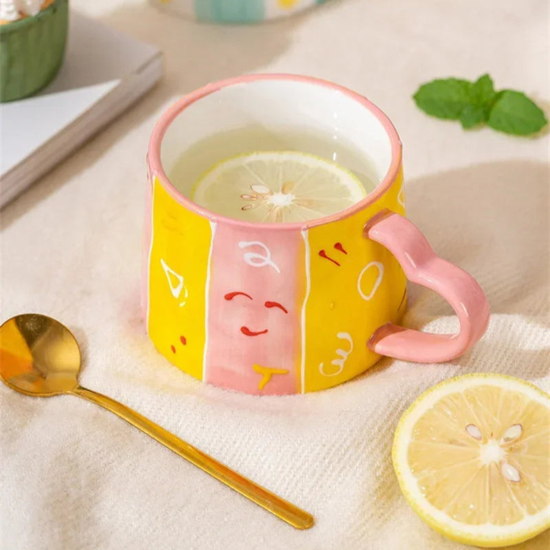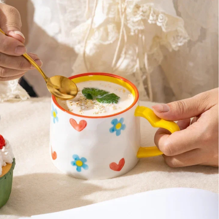 Caneca Pintada à Mão Cerâmica - Design Romântico