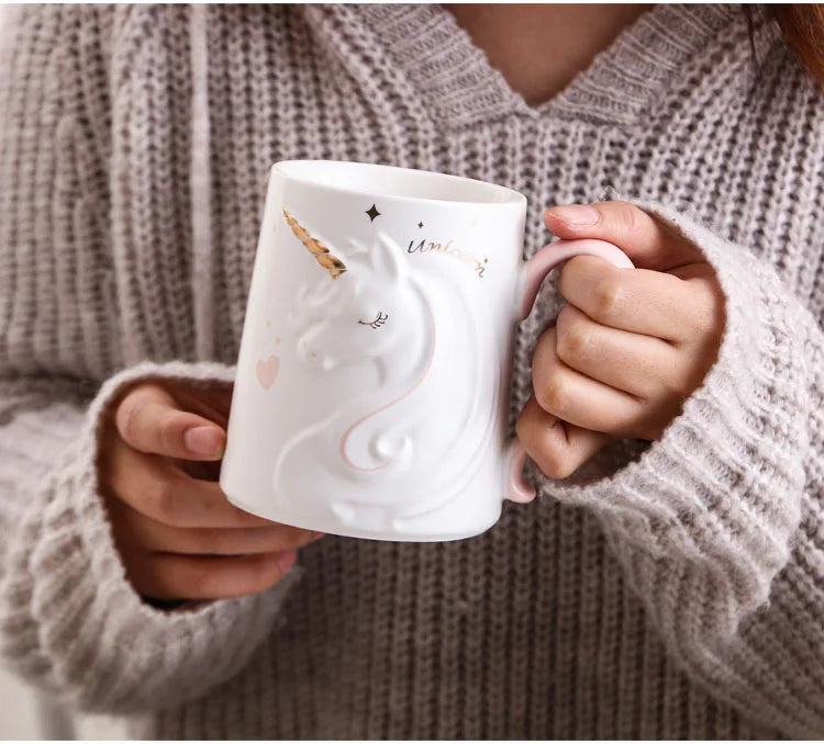 Caneca de Cerâmica de 350ml apresenta um design elegante com unicórnio em relevo e tampa funcional, perfeita para conservar suas bebidas com estilo. Uma peça sofisticada que une praticidade e charme para enriquecer sua rotina diária.