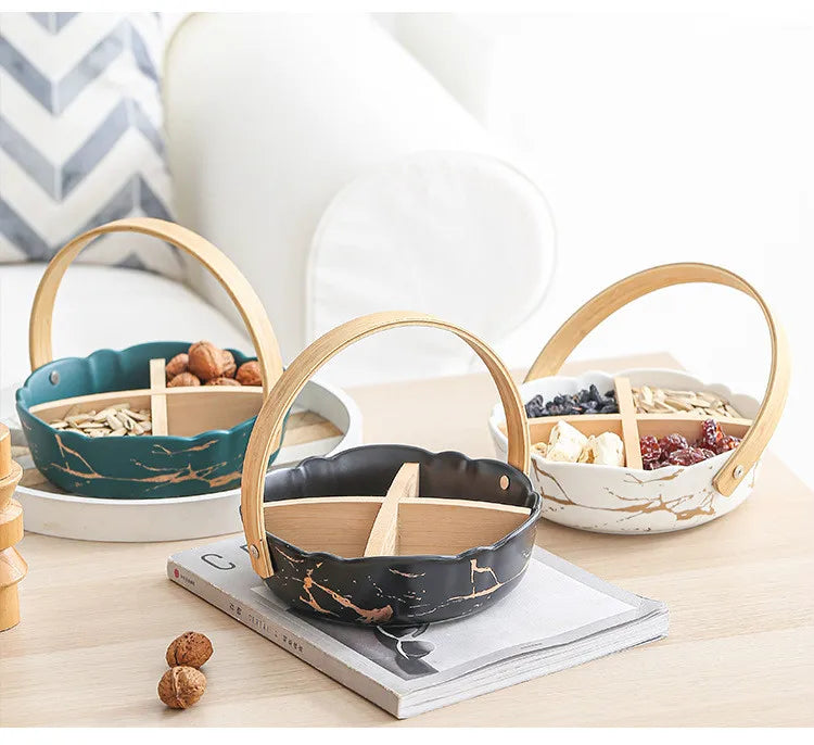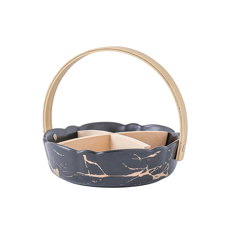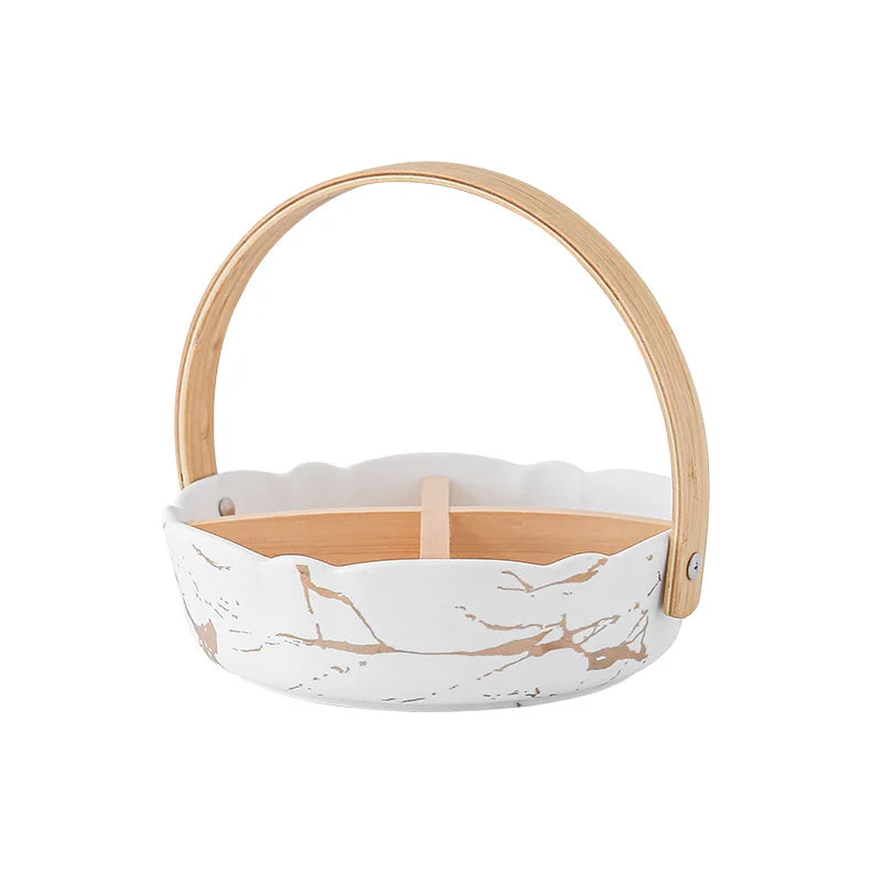 Cesta em Cerâmica com Alça de Madeira, é a solução perfeita para armazenar alimentos com estilo. Com seu design único e materiais de alta qualidade, ela combina funcionalidade e sofisticação em uma peça única.