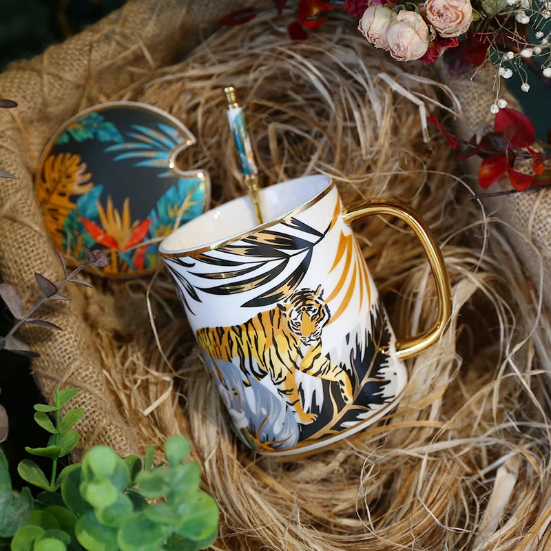 Conjunto Caneca de Porcelana de Luxo com Design Animal