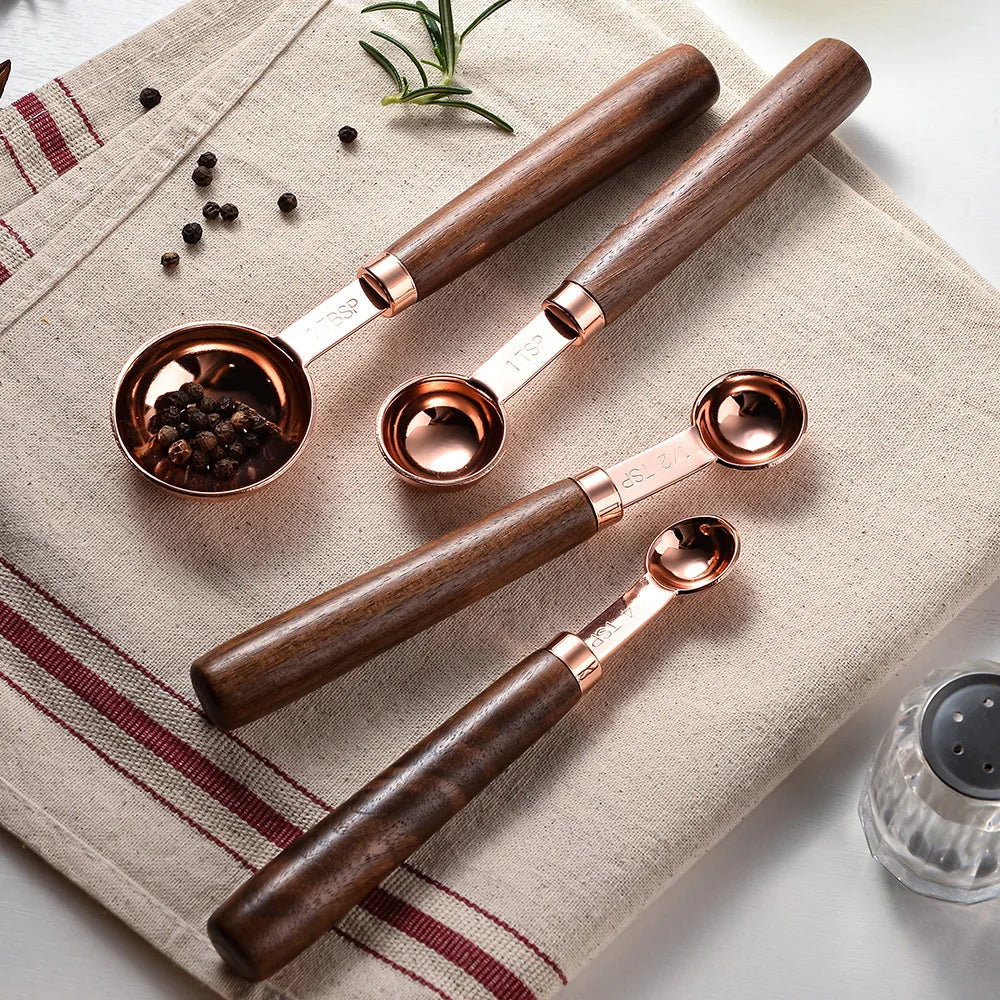 Conjunto de Colheres Medidoras em Aço Inox e Madeira