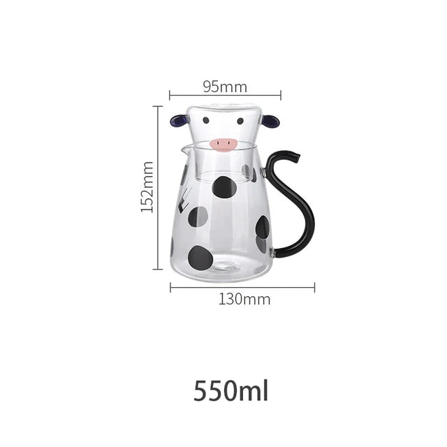 Conjunto Criativo Jarra Vaquinha, com tampa em formato copo, este conjunto temático e divertido irá adicionar diversão e personalidade às suas refeições.