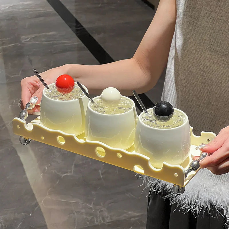 Conjunto Elegante de Frascos de Tempero em Cerâmica
