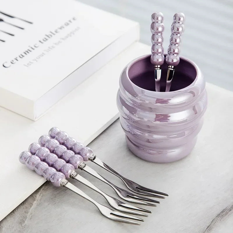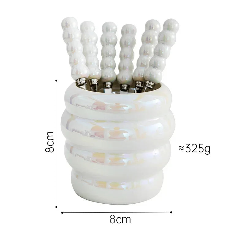 Conjunto Garfos para Frutas com Suporte de Cerâmica