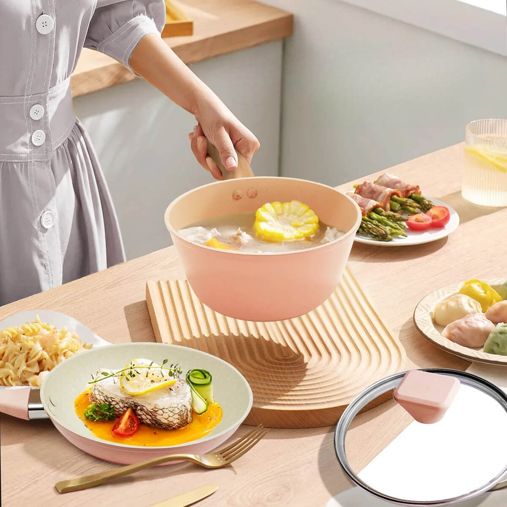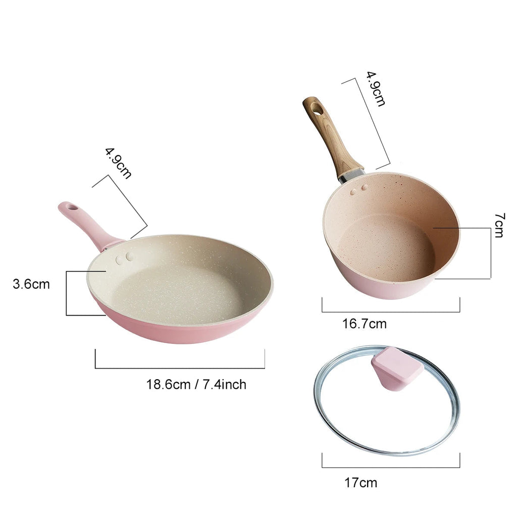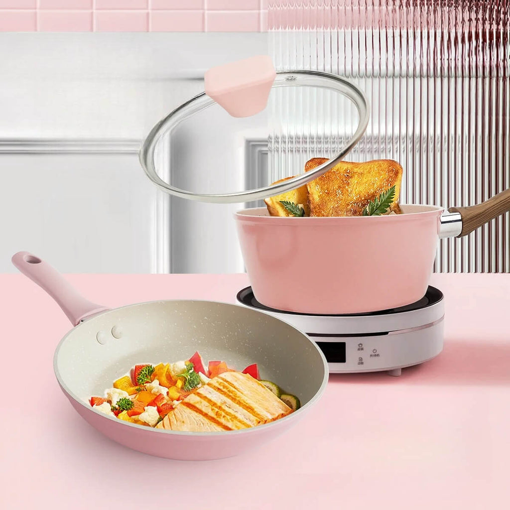 Conjunto Panela e Frigideira Rosa Antiaderente