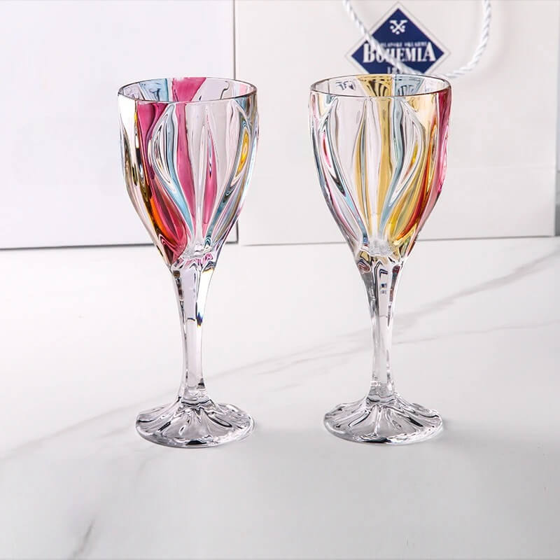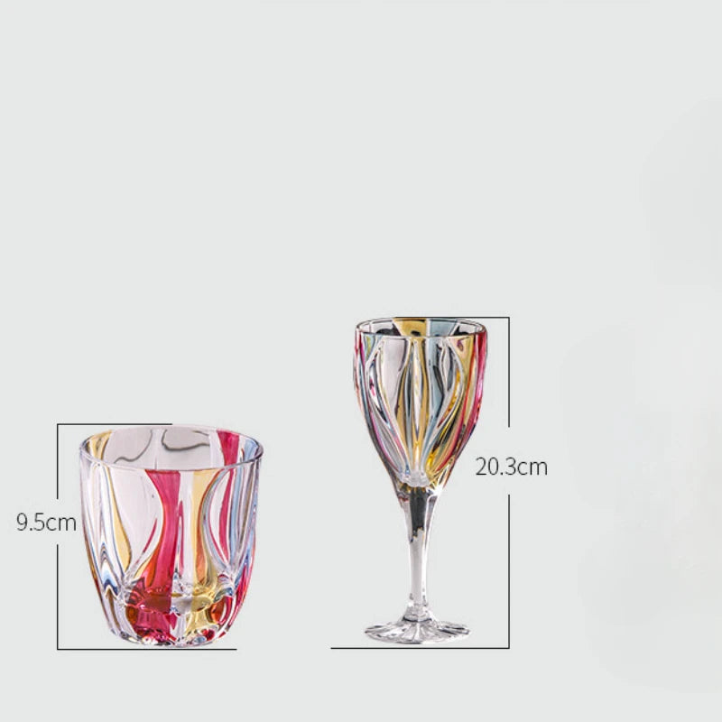 Eleve suas experiências de degustação com o nosso Conjunto de Taças de Cristal Colorido, uma escolha perfeita para quem aprecia sofisticação e estilo. Este conjunto é ideal para momentos especiais, oferecendo um toque de cor e requinte à sua mesa.