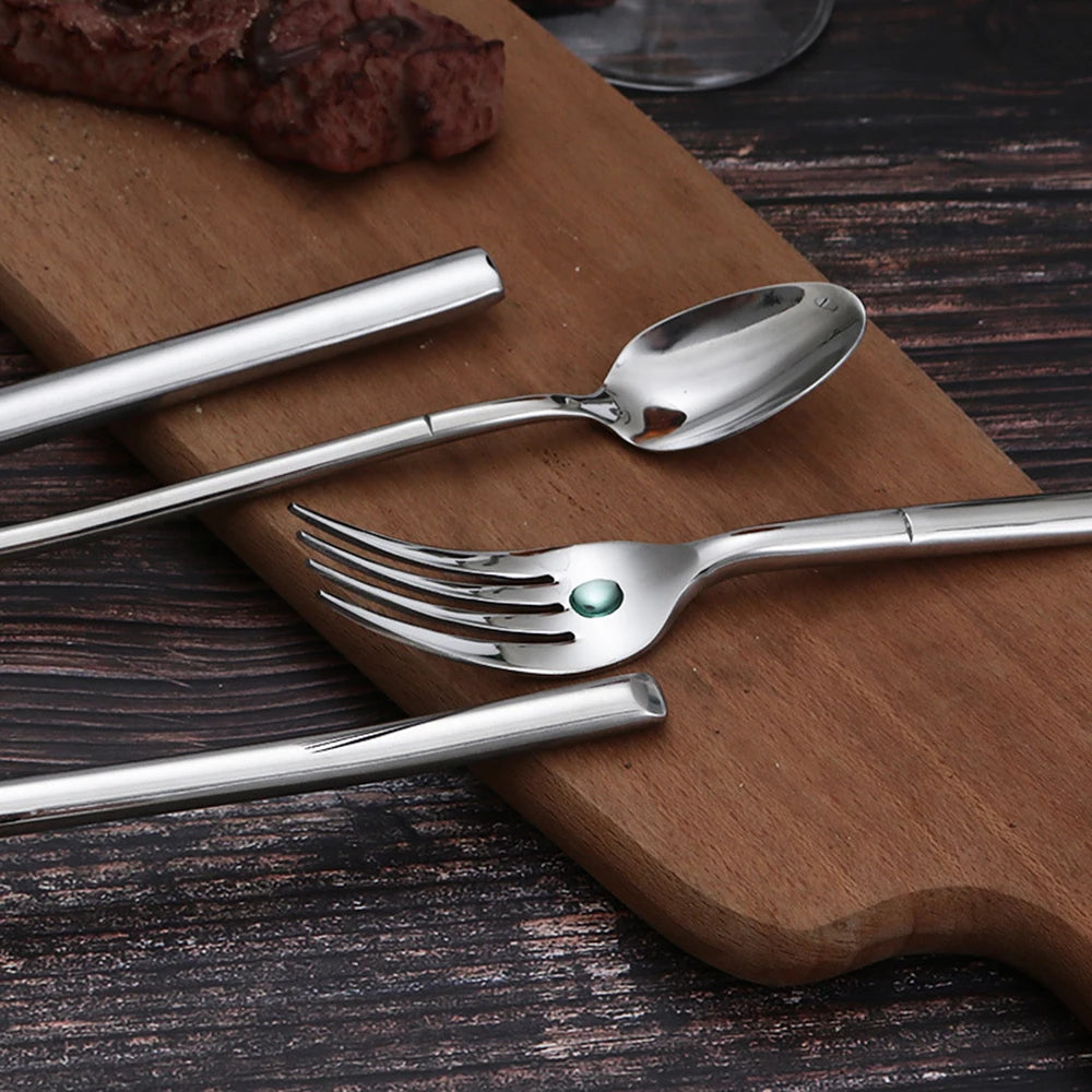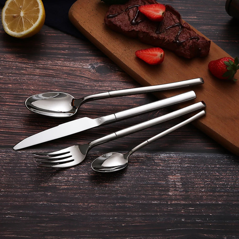 - O pacote inclui: 4 Peças (1 faca, 1 garfo, 1 colher, 1 colher de chá)