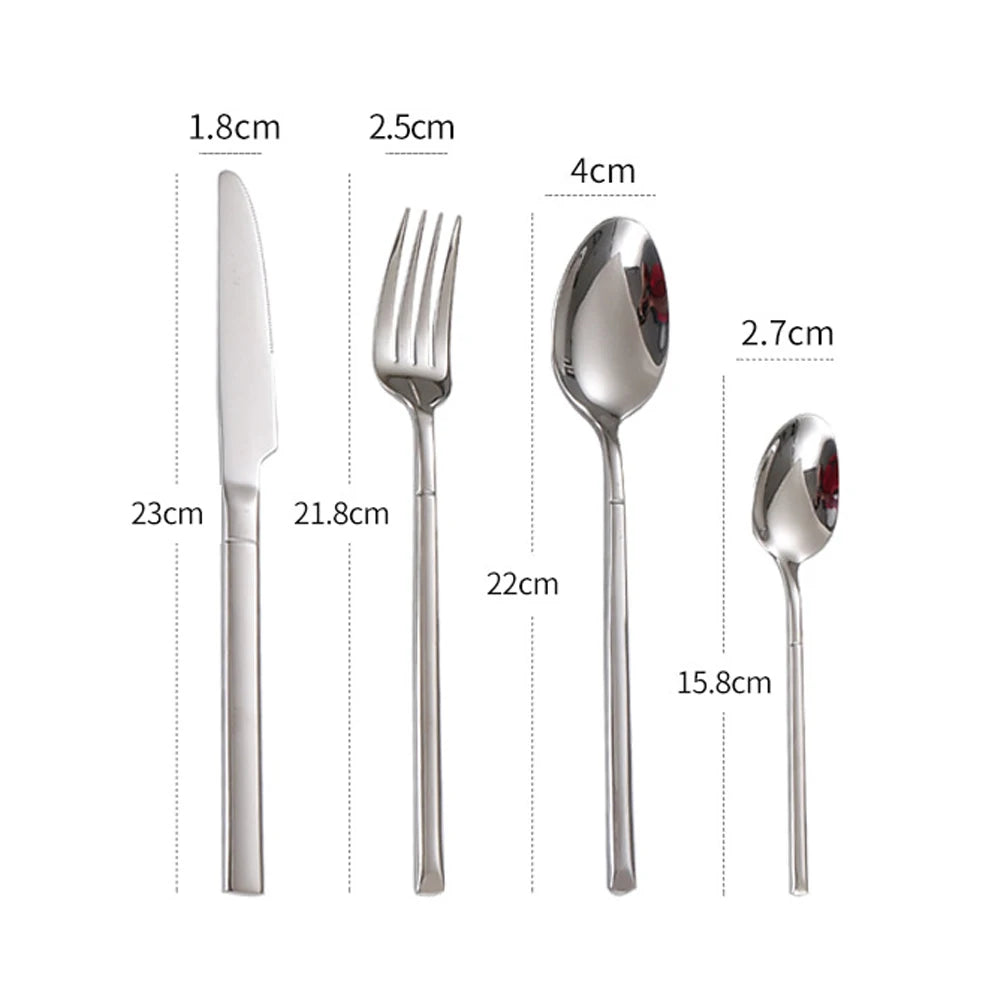 Conjunto Completo: Inclui faca, garfo, colher de jantar e colher de chá, perfeito para qualquer ocasião.