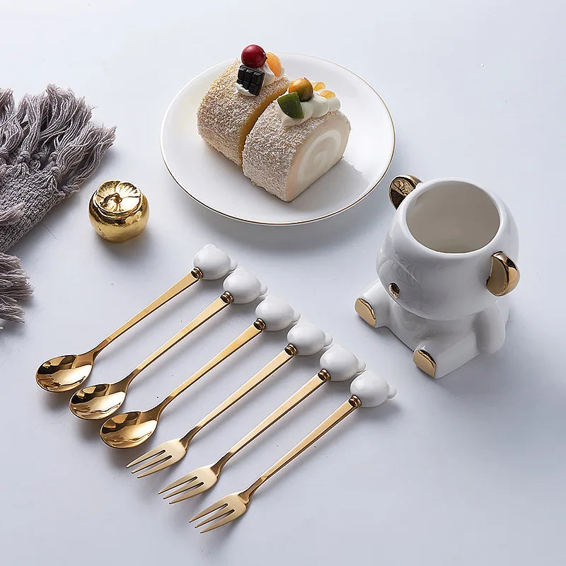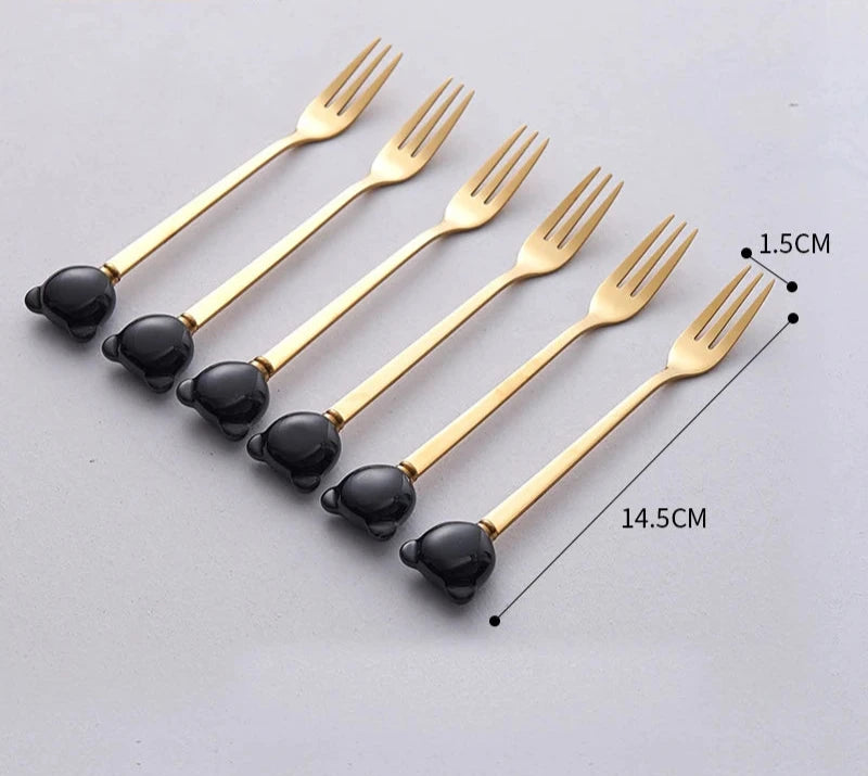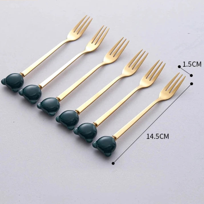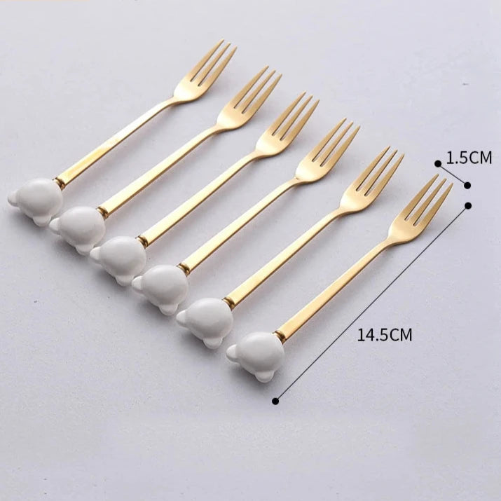 Este Conjunto de 6 Talheres para Fruta destaca-se pelo design elegante e acabamento impecável de cerâmica e aço inox, ideal para quem busca sofisticação na hora de servir.