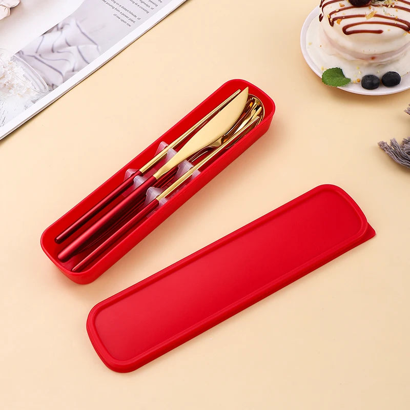Conjunto Talheres Portátil em Inox 4 Pcs, feito em aço inoxidável resistente e compacto, este conjunto garante uma experiência de jantar sem preocupações, onde quer que esteja.