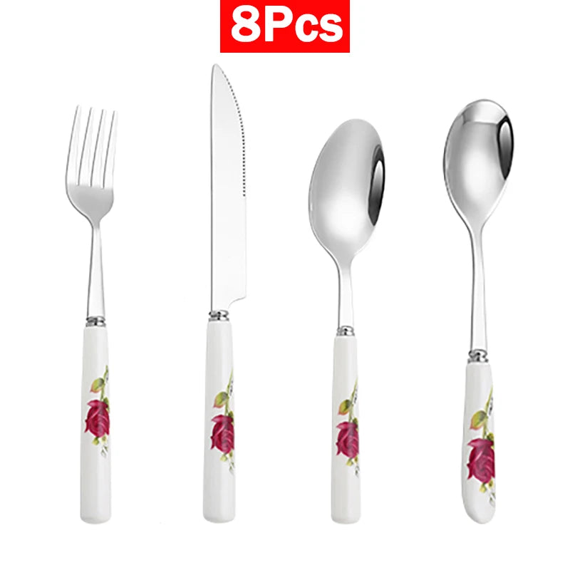 Conjunto Talheres Rosas Pintada - 8 ou 10pcs