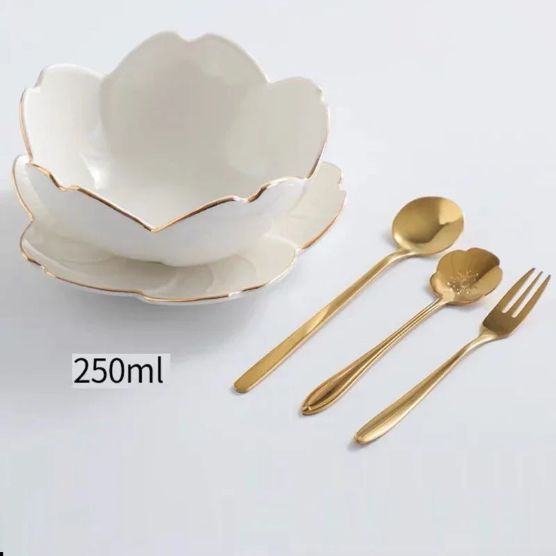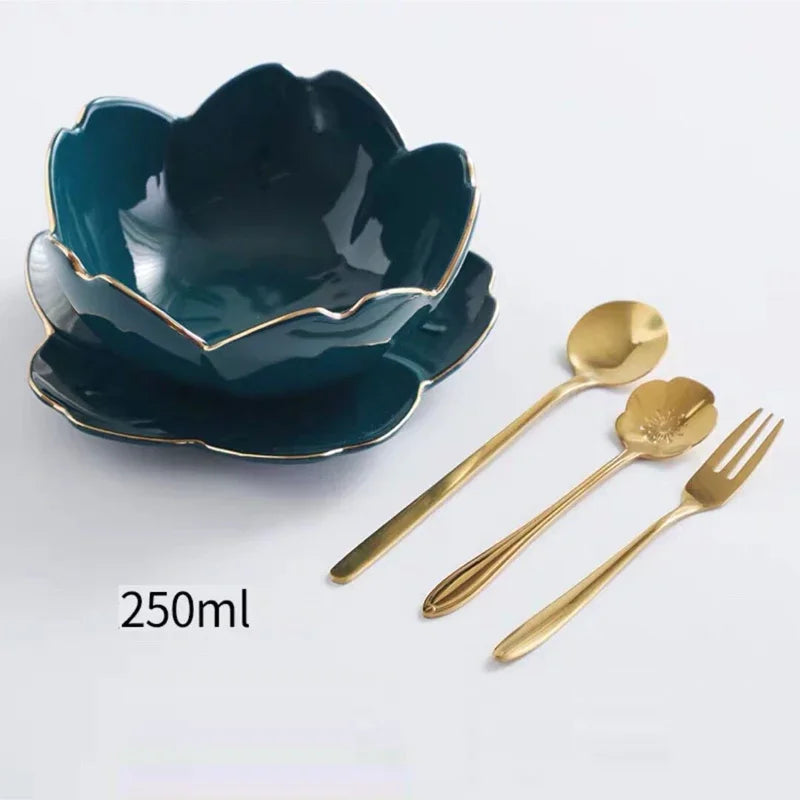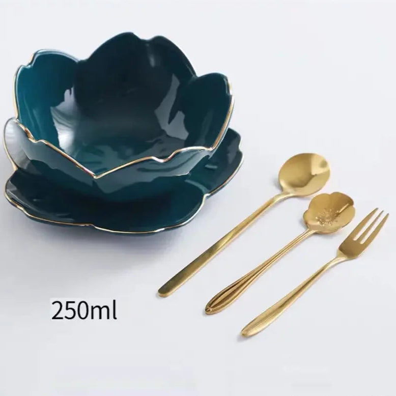 - Conjunto Completo: Inclui tigela, prato, garfo e colheres, ideal para sobremesas e saladas.