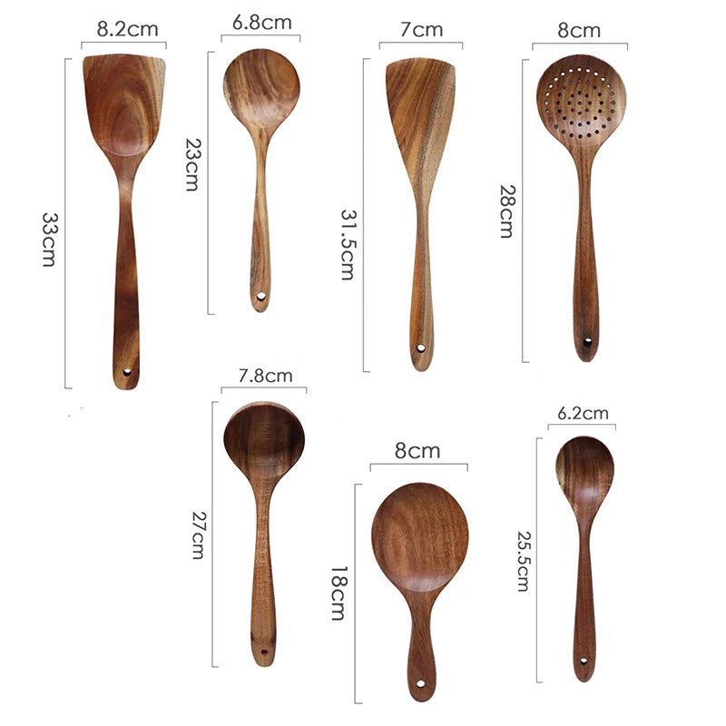 Conjunto de Utensílios de Cozinha em Teca Natural