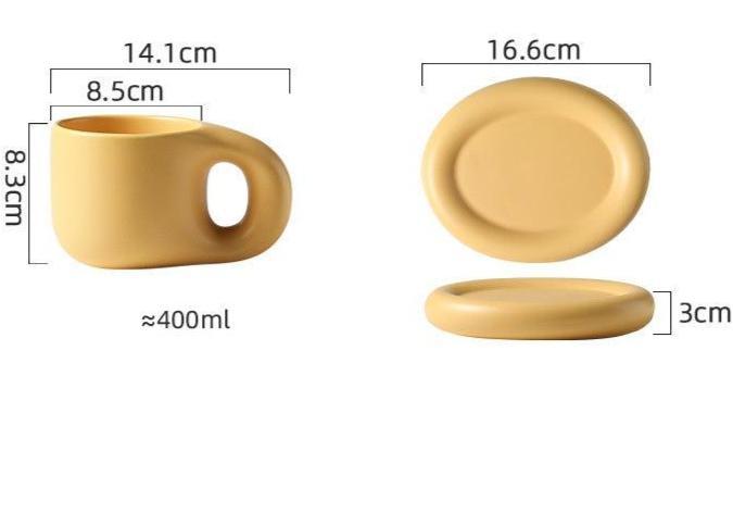Conjunto Xícara Belly em Cerâmica, composto por uma xícara e um pires, com design moderno e único em barriga, é perfeito para servir café ou chá com muito estilo.