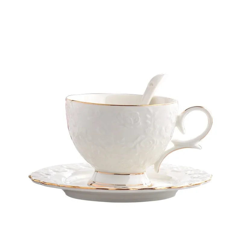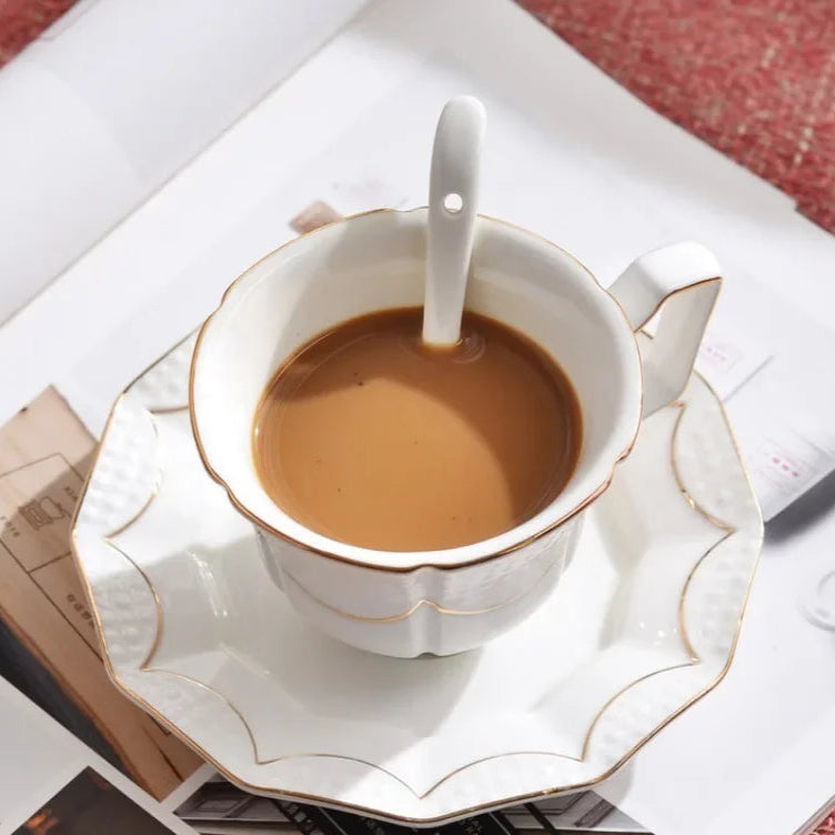 Conjunto Xícara Flores Bordada inclui uma xícara de cerâmica elegantemente trabalhada e um pires combinando, ambos adornados com delicados bordados florais. Este conjunto refinado combina detalhes artísticos com materiais de qualidade, oferecendo um toque sofisticado aos seus momentos de chá ou café.