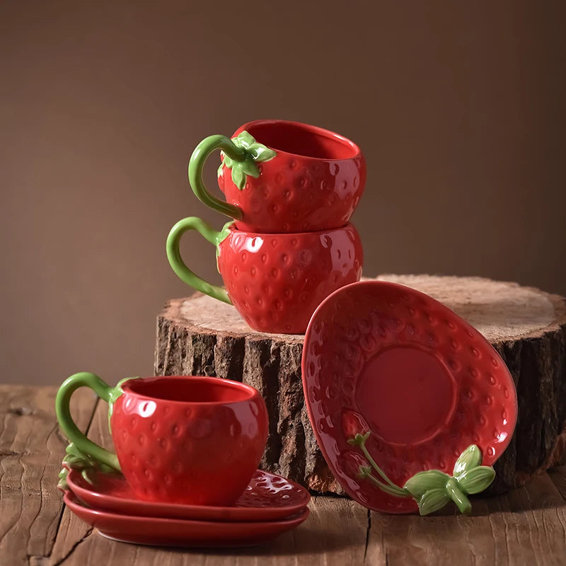 Descubra a elegância e o charme do nosso Conjunto Xícara e Pires de Porcelana Formato Morango, meticulosamente pintado à mão para trazer um toque de sofisticação ao seu momento de café. Com um design inspirado em morangos, este conjunto é a escolha perfeita para quem aprecia beleza e funcionalidade.