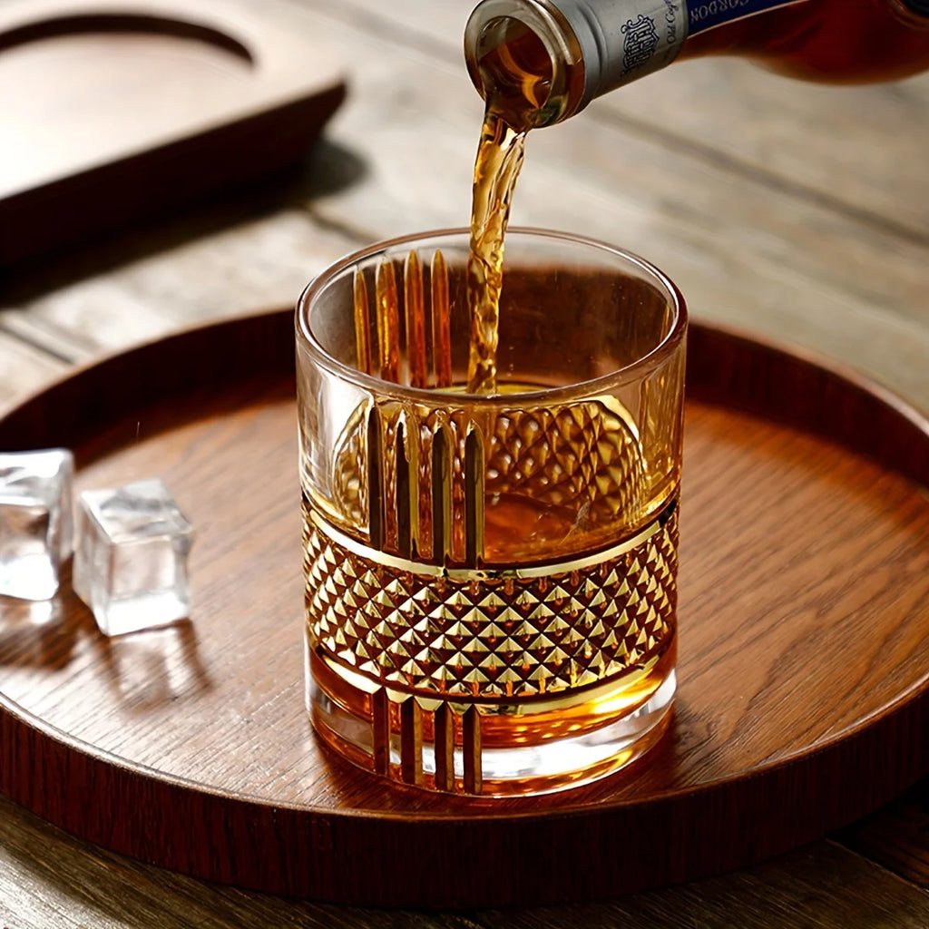 Copo Cairo 280ml, com detalhes dourado e estilo contemporâneo, é perfeito para celebrar bons momentos com sua bebida favorita.