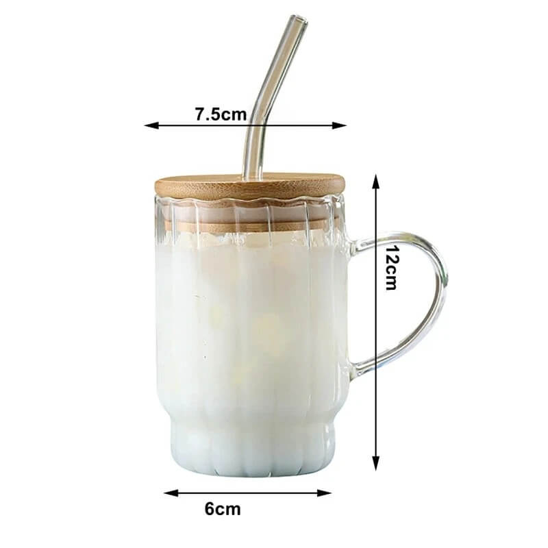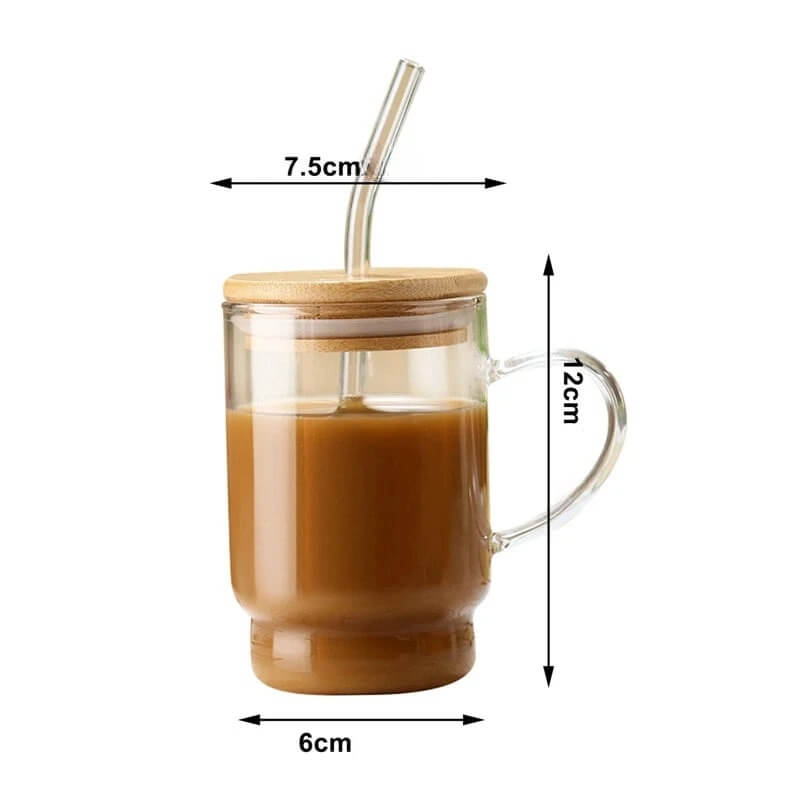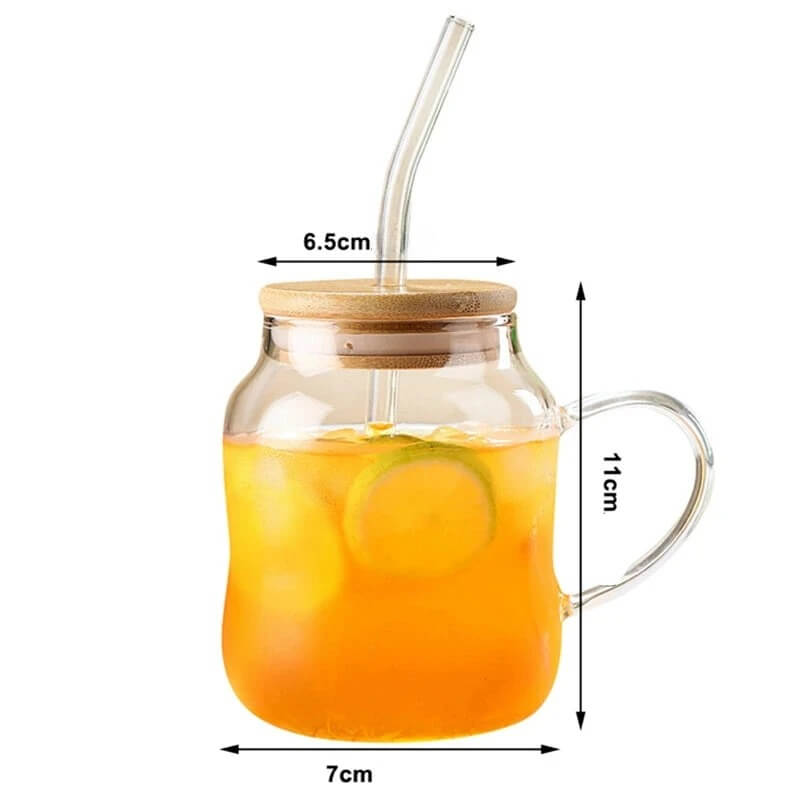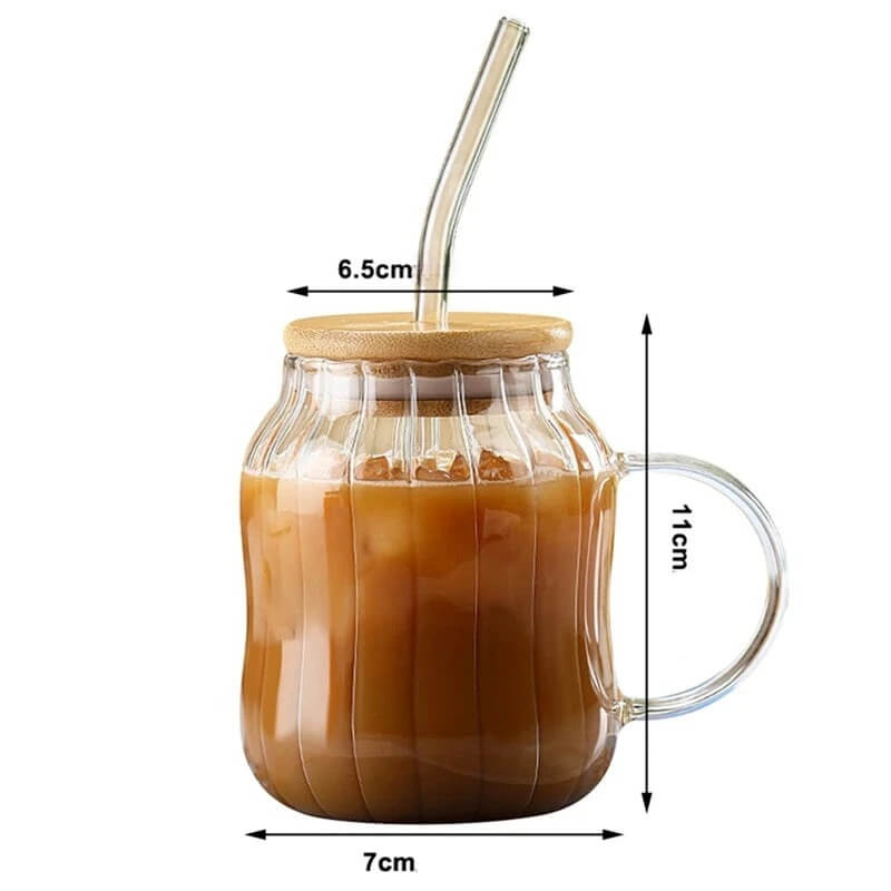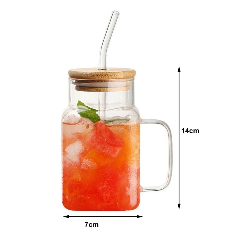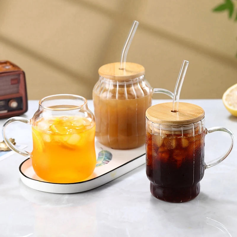 Copo de Vidro com Alça, canudo e tampa de madeira é a escolha perfeita para quem aprecia bebidas com estilo. Ideal para sucos, cafés gelados e outras bebidas, seu design sofisticado alia praticidade e elegância, proporcionando uma experiência refinada a cada gole.