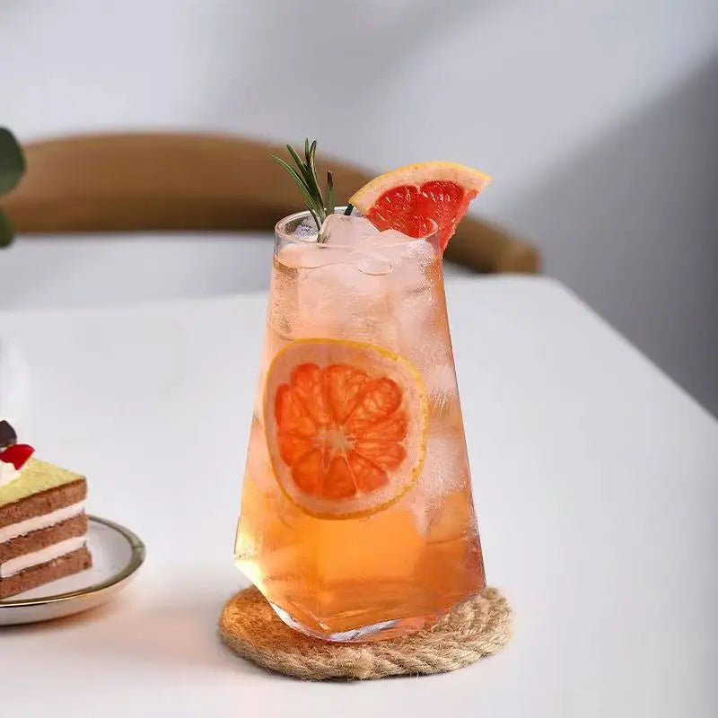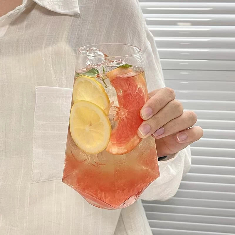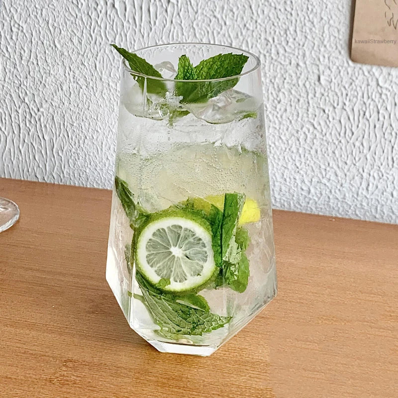 Copo de Vidro Criativo oferece duas opções sofisticadas: modelo quadrado com capacidade de 500ml e modelo hexagonal com 540ml. Com design moderno e formas exclusivas, esses copos valorizam a apresentação das suas bebidas, combinando elegância e funcionalidade para momentos especiais.