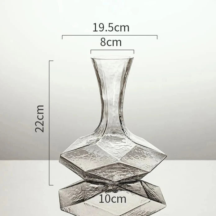 Decanter Geométrico de Vidro de 1350ml une design contemporâneo e funcionalidade superior. Seu formato exclusivo favorece a perfeita oxigenação do vinho, intensificando aromas e sabores, enquanto o vidro cristalino valoriza a apresentação da bebida.