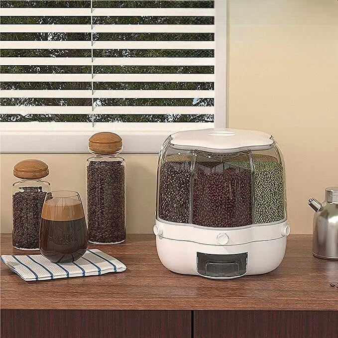 Dispensador de Alimentos Giratório, com seu design prático e inovador, ele facilita o acesso e armazenamento de alimentos, economizando espaço e mantendo sua cozinha organizada.