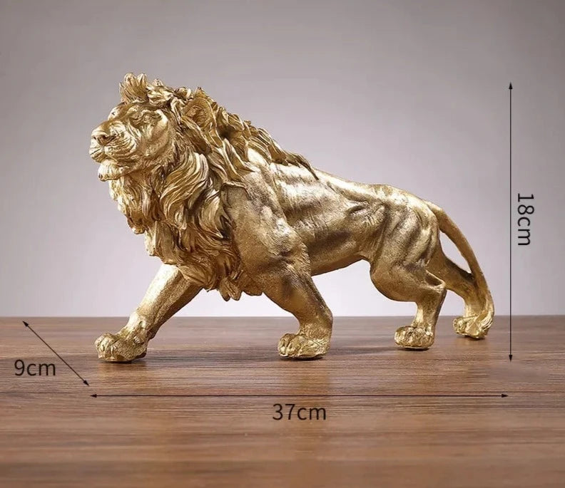 Escultura Leão Dourado, confeccionado em resina de alta qualidade, esta peça imponente captura a majestade e a beleza do leão em detalhes impressionantes.