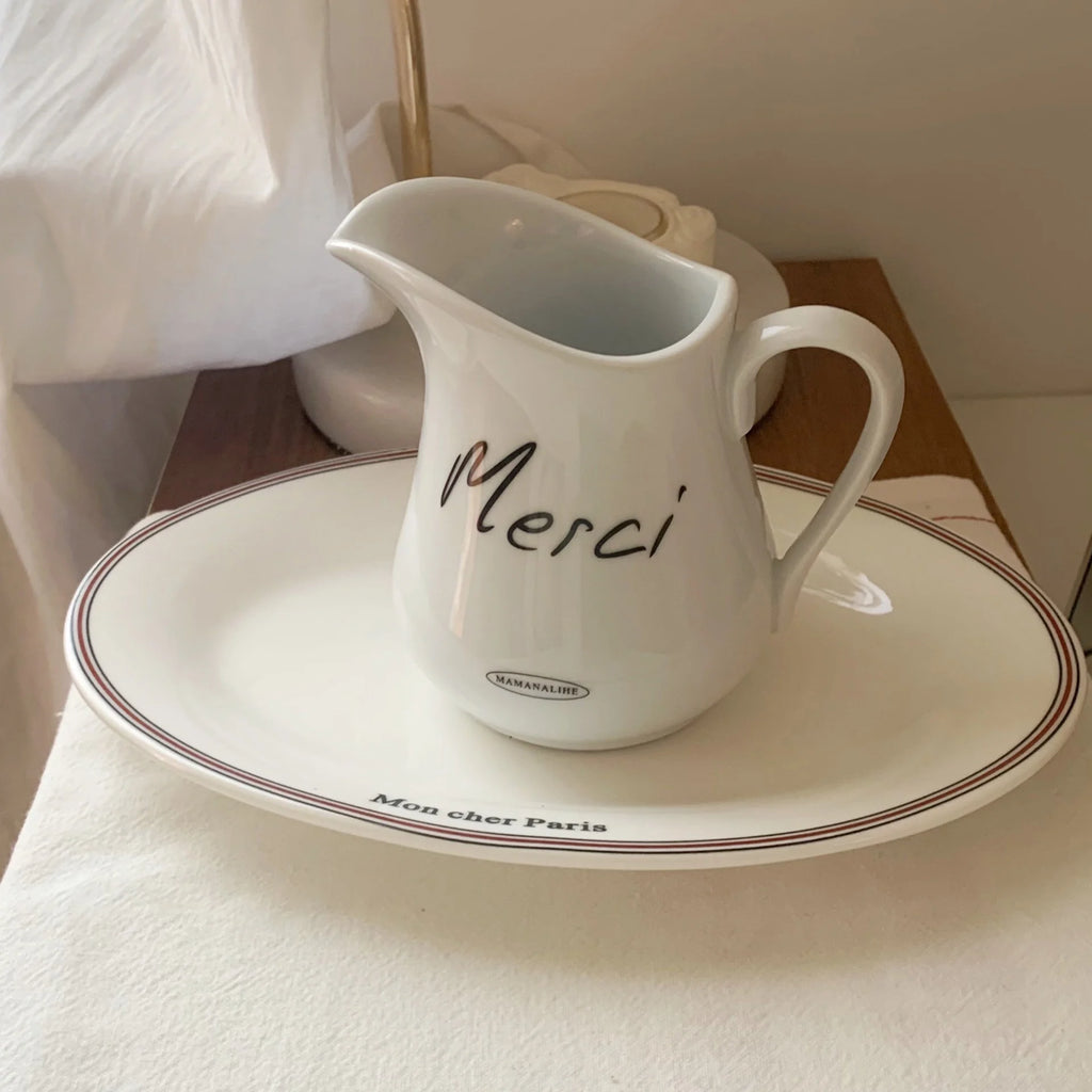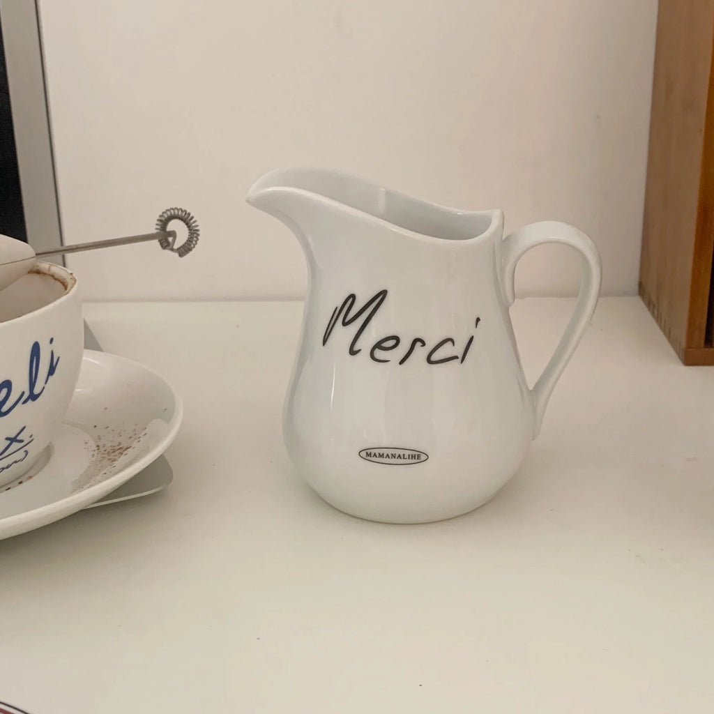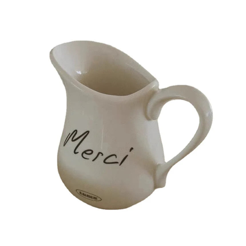 Jarra Merci para Leite em porcelana de 300ml oferece uma combinação perfeita de sofisticação e praticidade. Seu design elegante e acabamento impecável valorizam a apresentação, tornando-a ideal para servir leite com charme em qualquer ocasião.