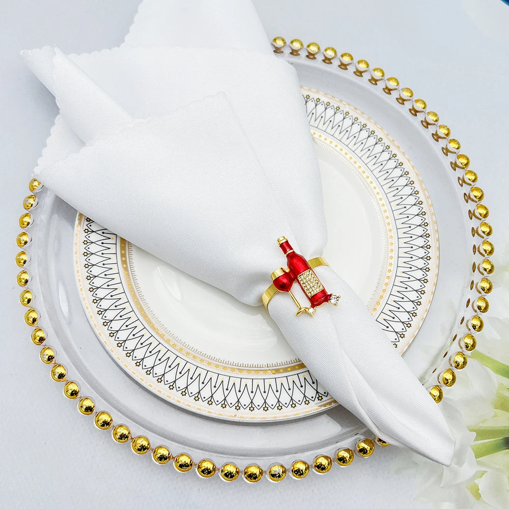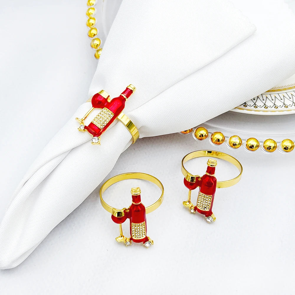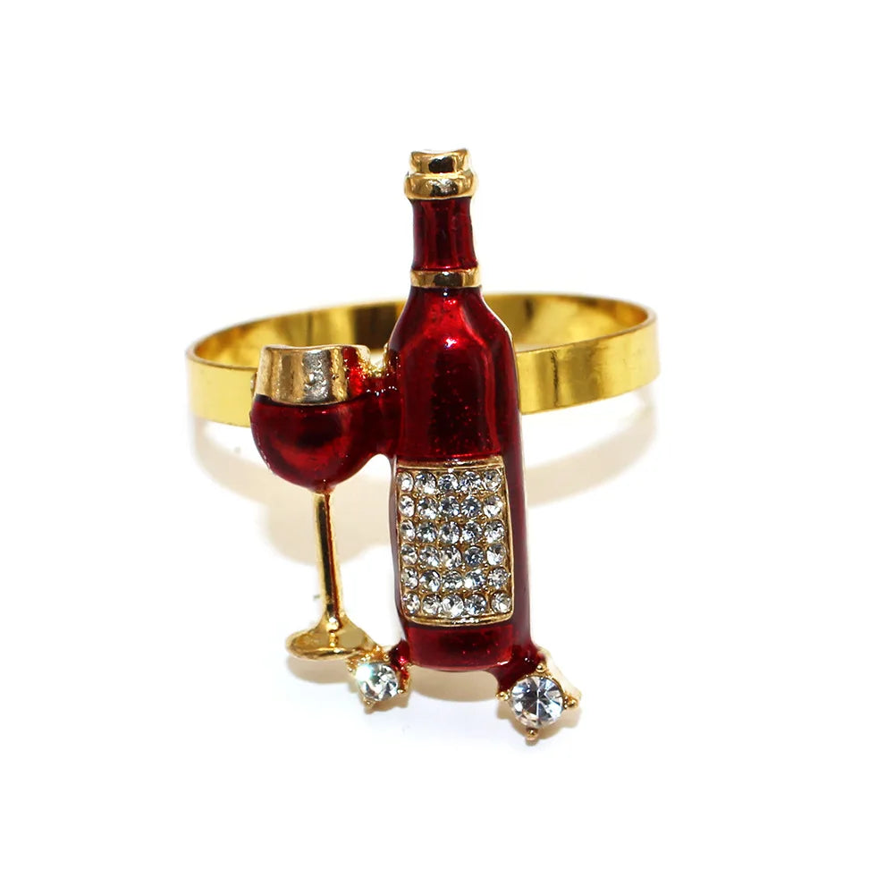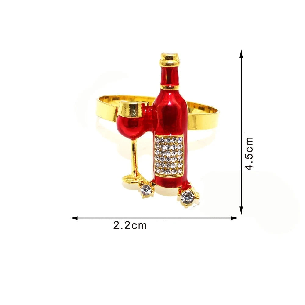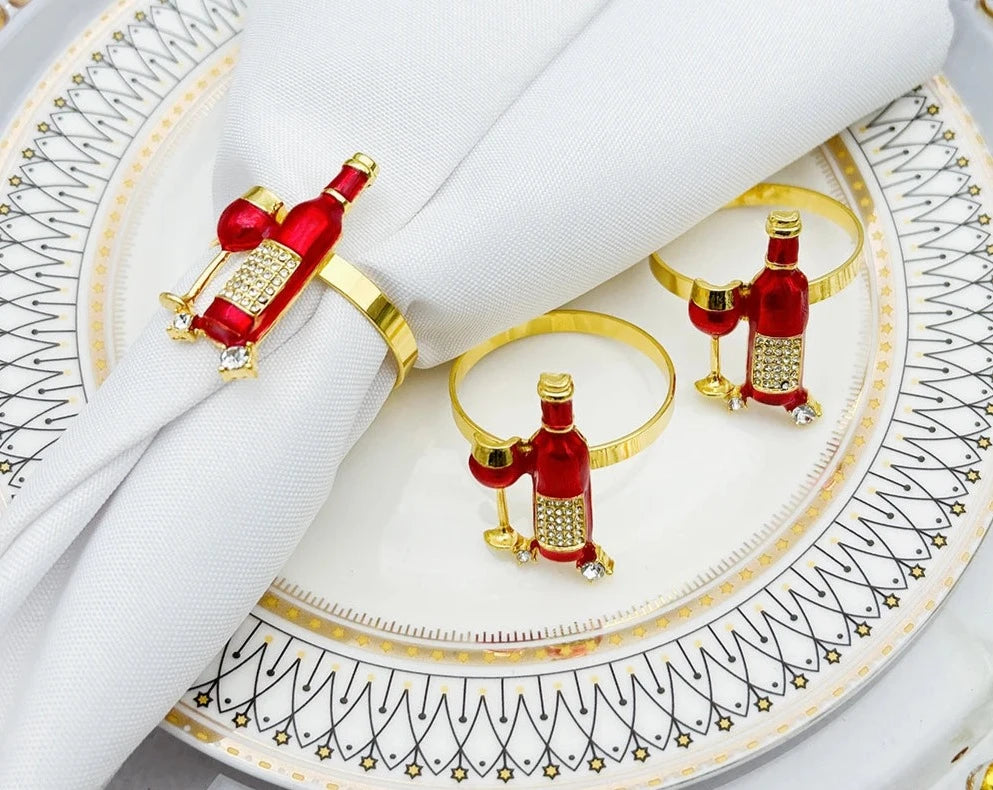 kit Anéis de Guardanapo, é perfeito para adicionar um toque elegante e temático às suas refeições. Cada um dos seis anéis é no formato de taças e garrafas de vinho, o que traz um charme especial à sua mesa.