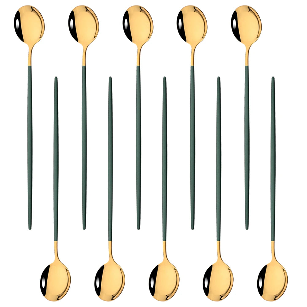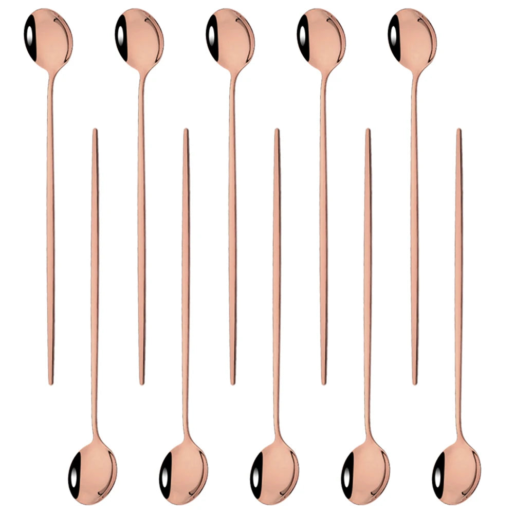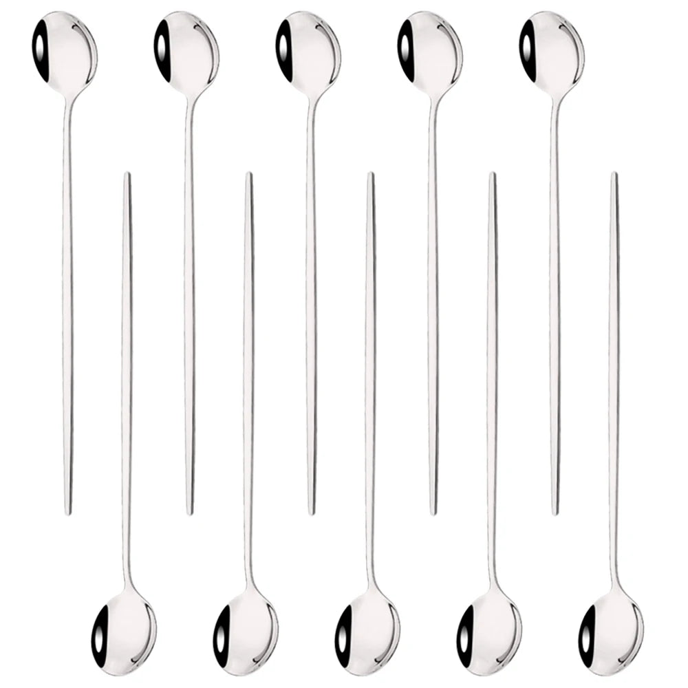 Kit Colheres de Aço Inox com Cabo Longo - 10 Peças