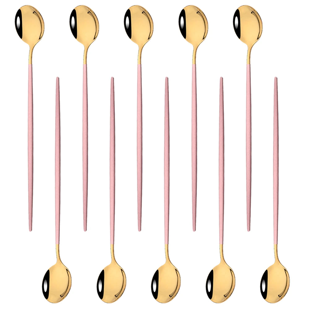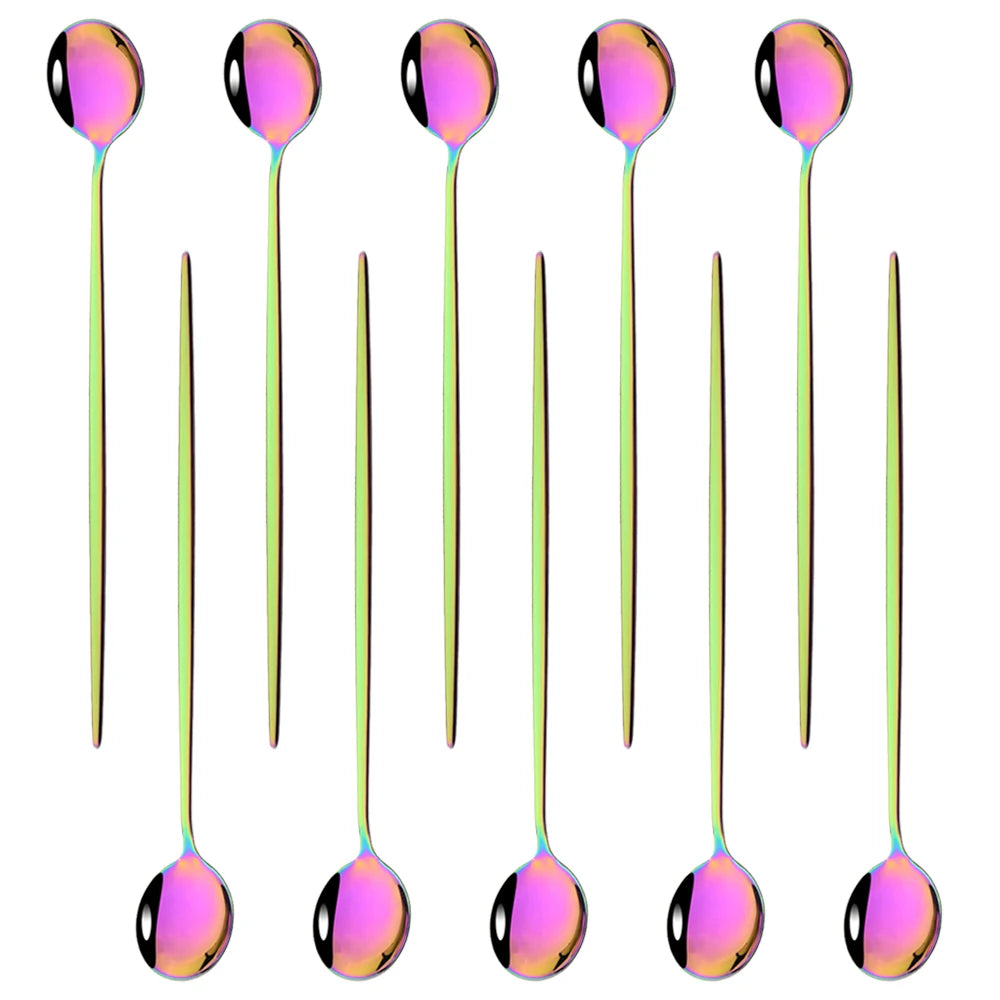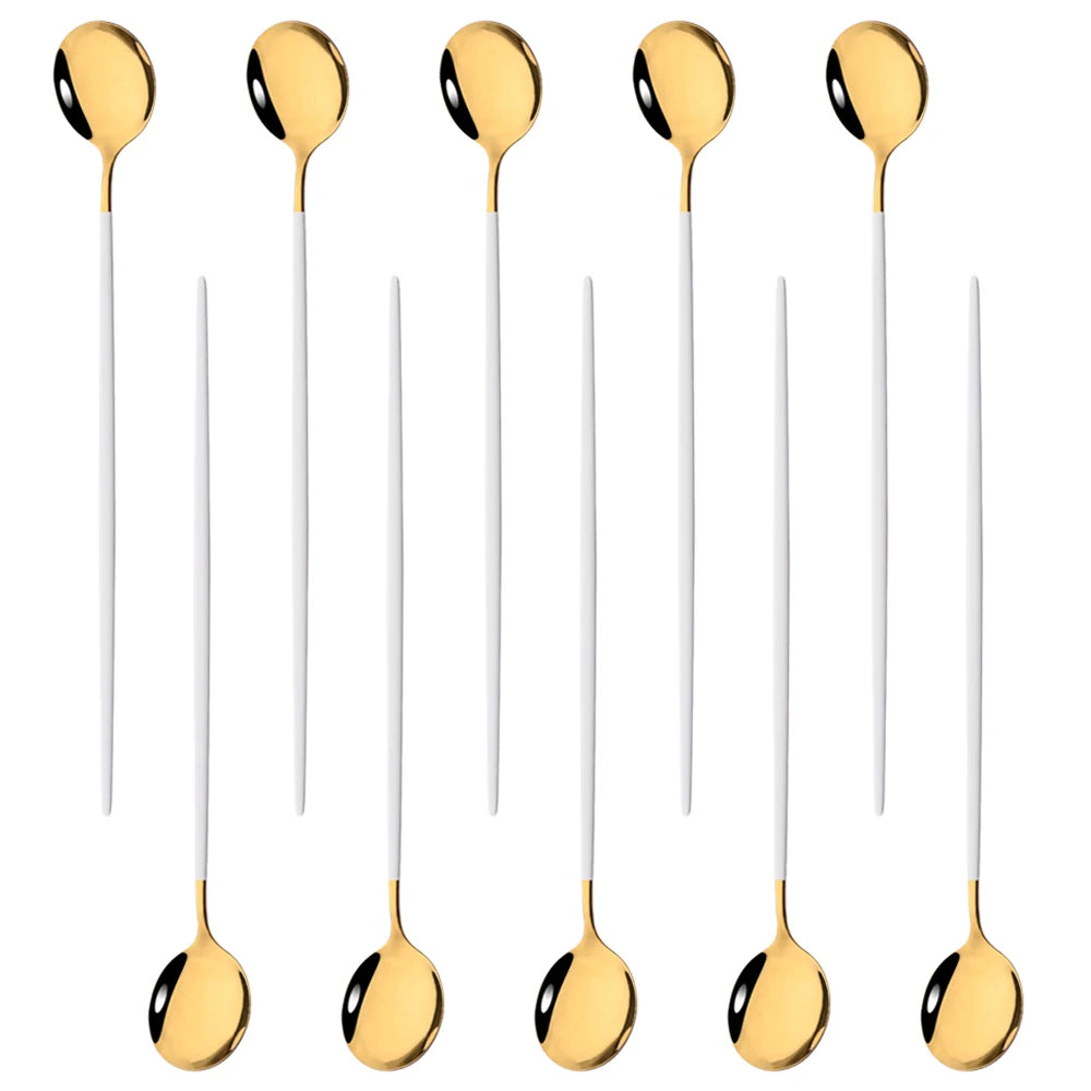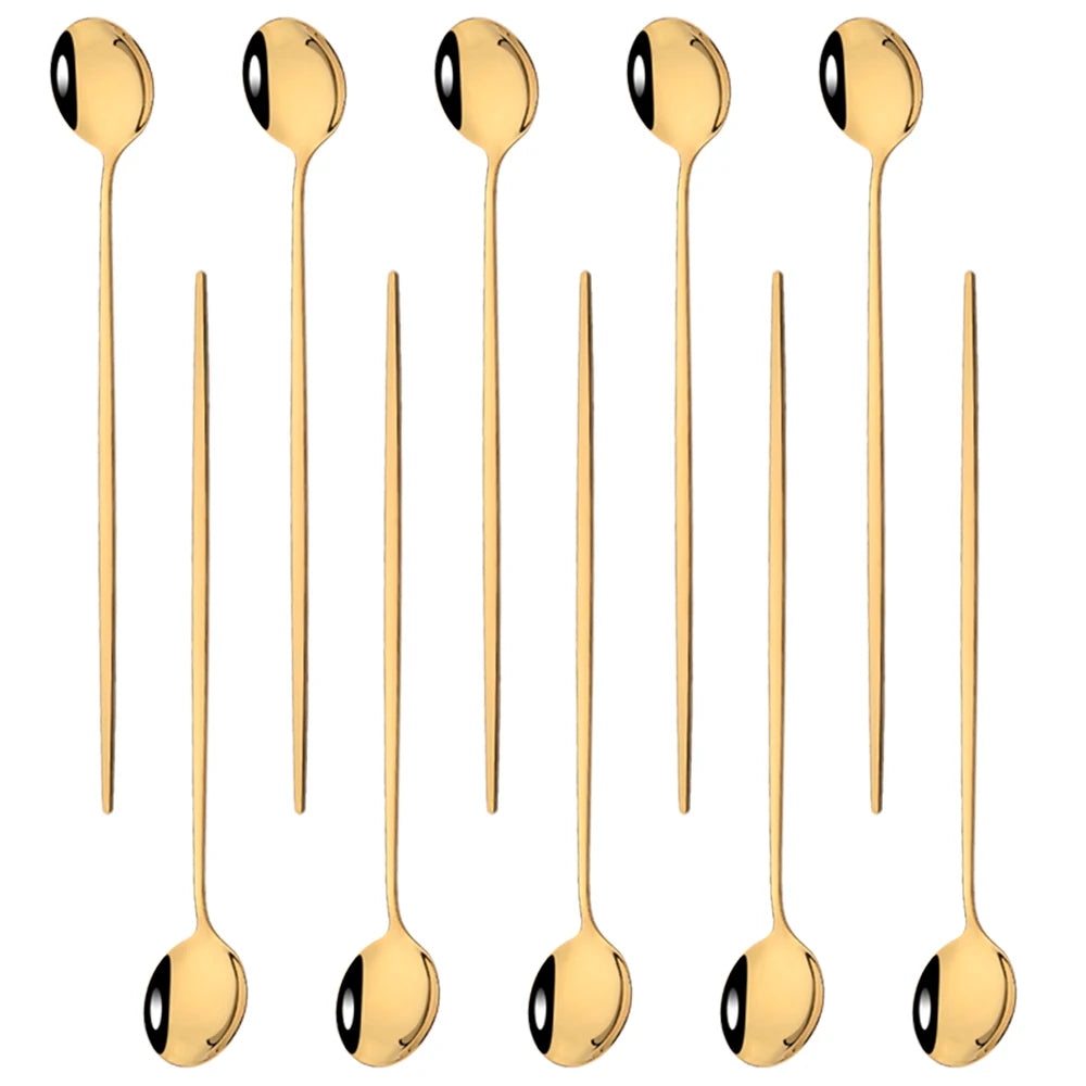 Kit Colheres de Aço Inox com Cabo Longo - 10 Peças