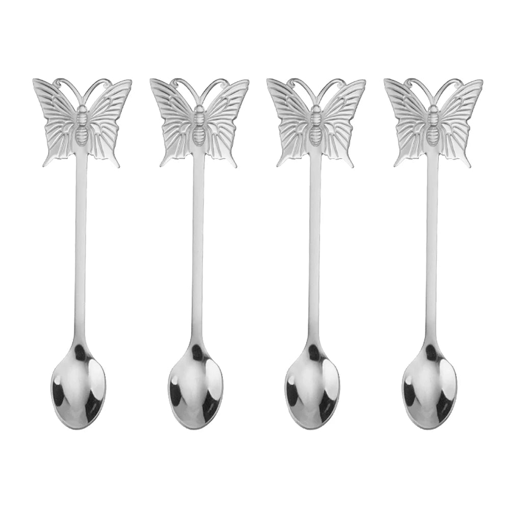 Kit Colheres de Chá Borboletas em Inox - 4 Peças