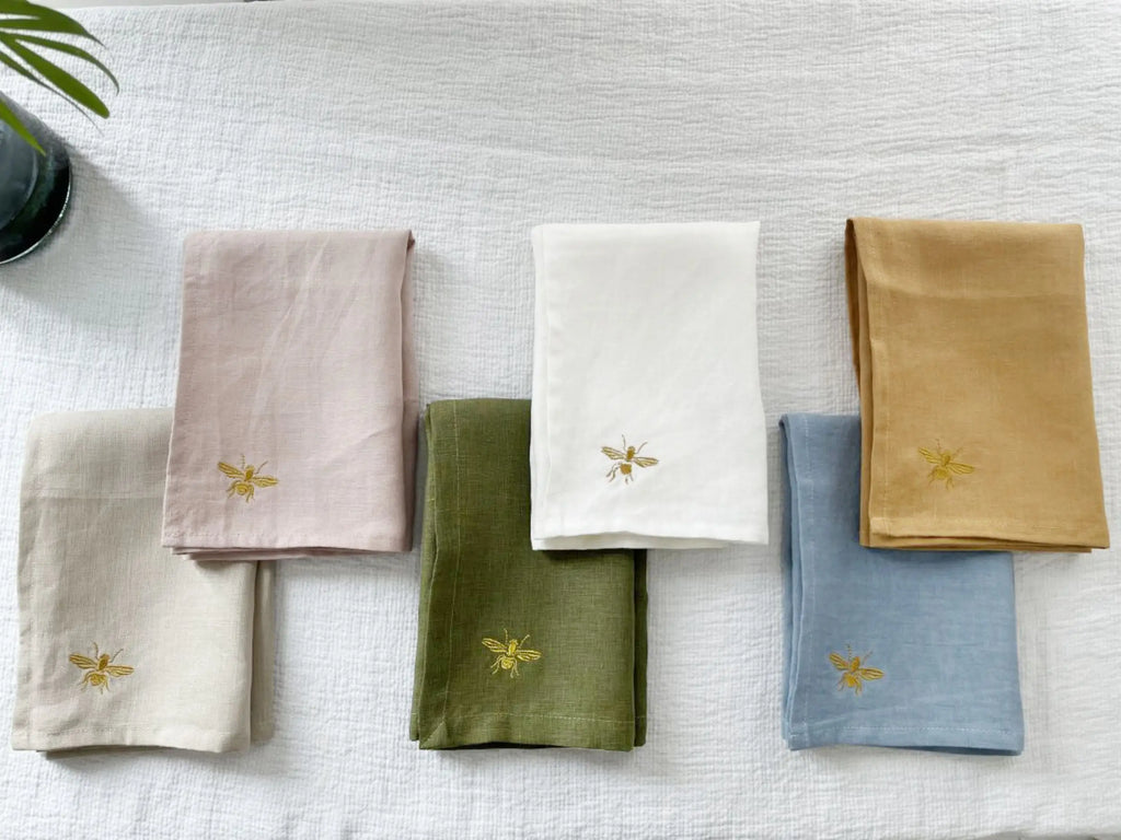 Kit Guardanapos Abelha de Linho, confeccionado em linho de alta qualidade, este kit contém 4 guardanapos com estampas de abelhas que adicionam um toque de elegância a qualquer refeição.