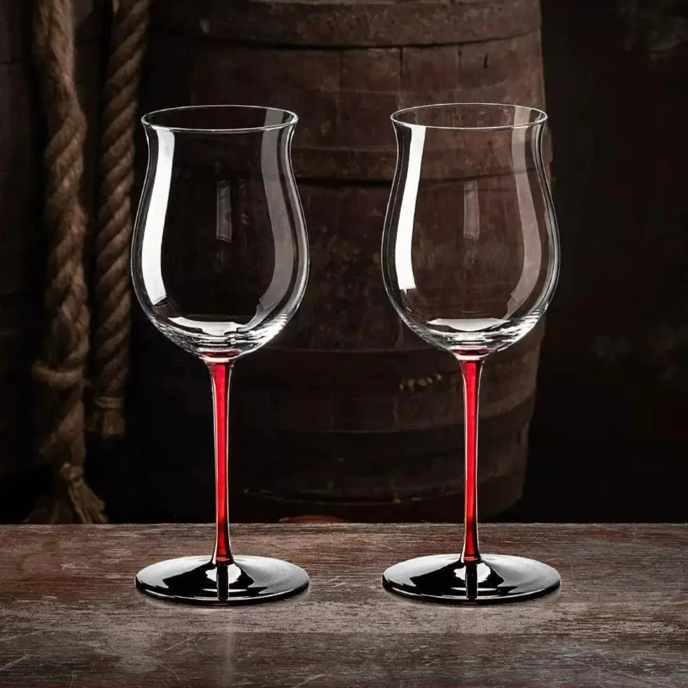 Kit Taças de Cristal Haste Red 680ml reúne duas taças sofisticadas, perfeitas para apreciar vinhos com elegância. Feitas em cristal transparente, destacam a cor e aroma da bebida, enquanto a haste fina oferece conforto e estilo ao segurar.