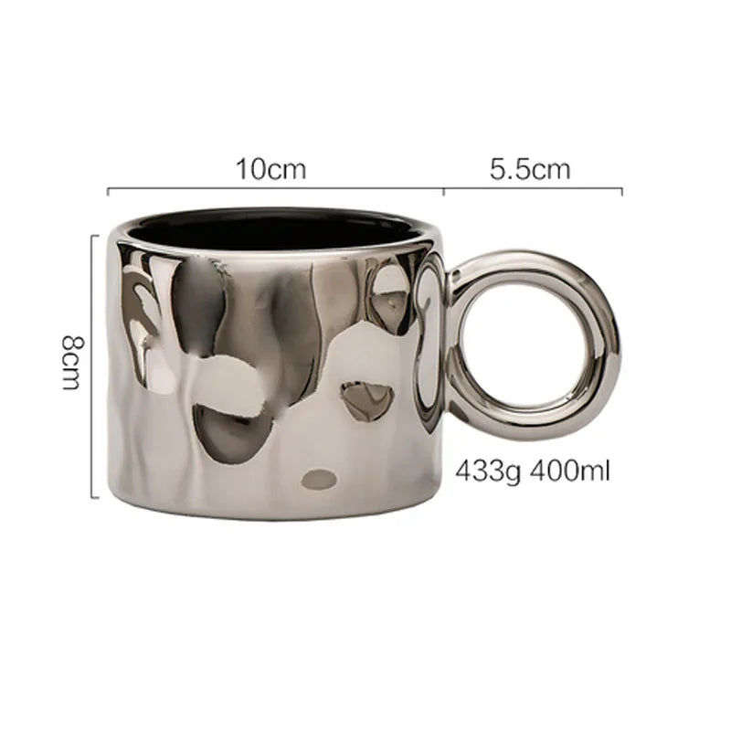 Linha Canecas Prateada Criativa em cerâmica, é a escolha perfeita para quem busca unir personalidade e funcionalidade.