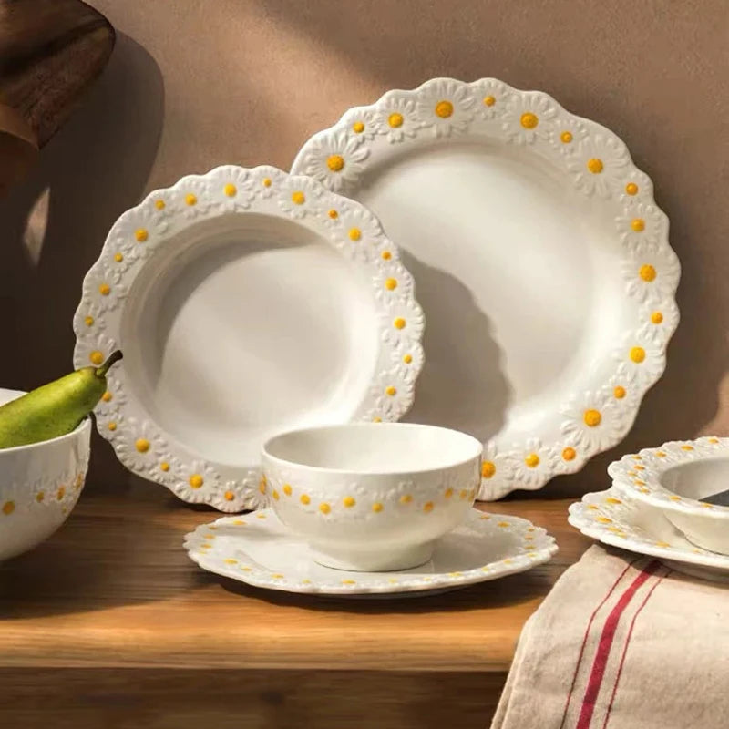 Linha Louças Margarida em Cerâmica, com design delicado e durabilidade garantida, essa coleção traz mais charme e elegância para suas refeições.