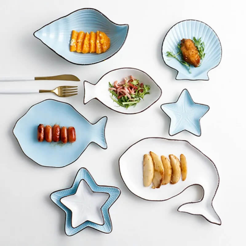 Linha Oceano Louças em Cerâmica, com 8 modelos diferentes em formato de animais marítimos, essas louças trazem a beleza e a diversidade do oceano para sua casa.