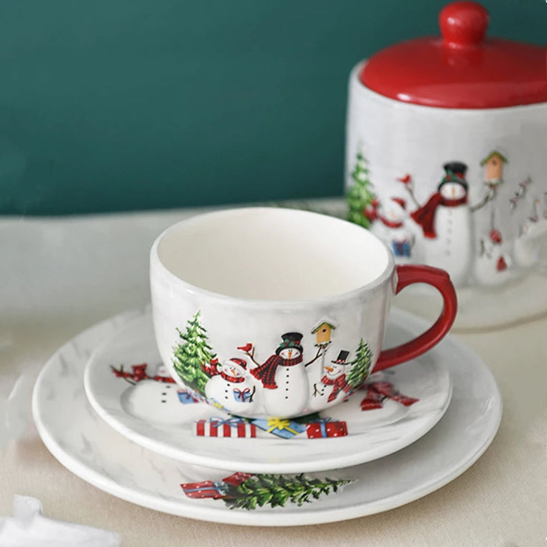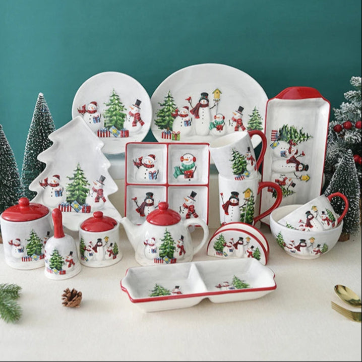 Descubra como adicionar um toque especial às suas festividades com nossas louças natalinas em cerâmica, decoradas com alegres bonecos de neve. Ideal para criar uma atmosfera de alegria e requinte em suas comemorações de fim de ano.