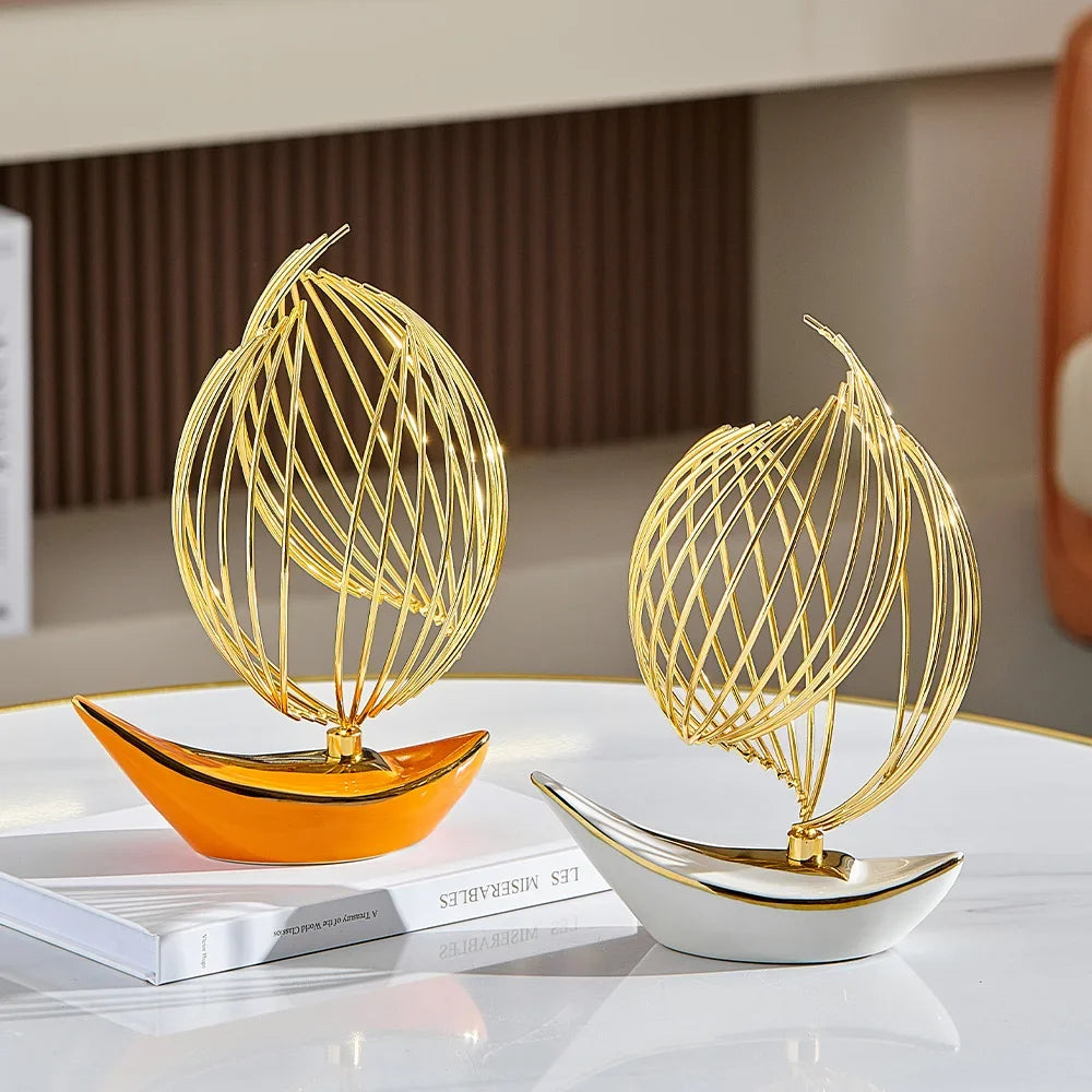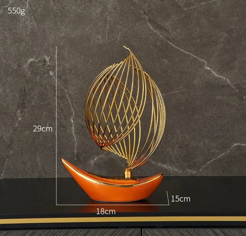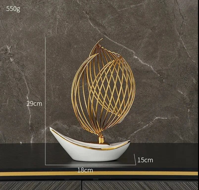 O Barco Escultura em Porcelana, esta peça exclusiva com design moderno e detalhes em dourado, adiciona uma atmosfera única a qualquer espaço.