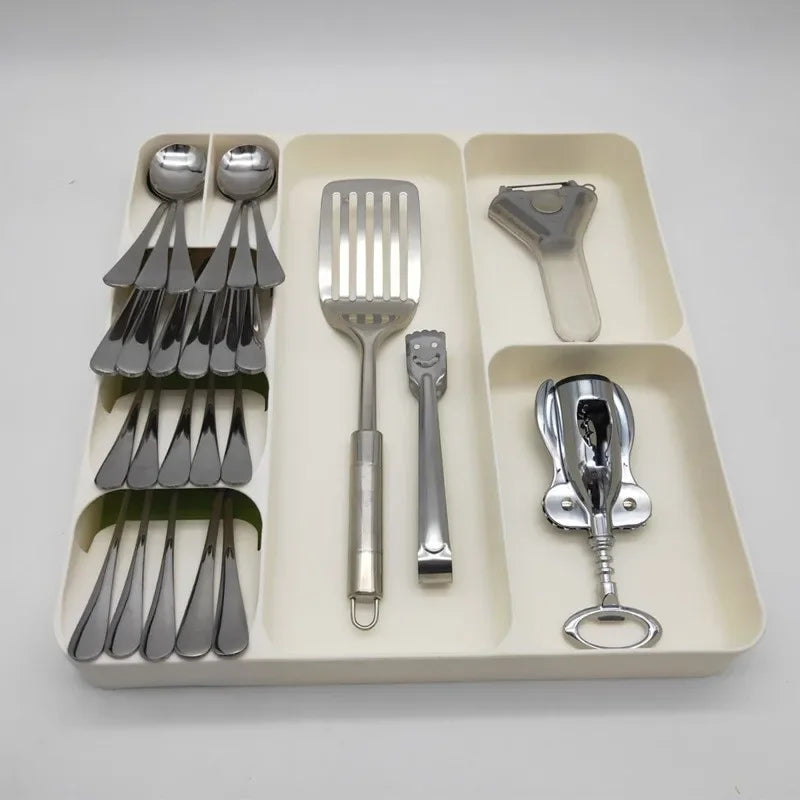 Eleve a organização da sua cozinha com o nosso Organizador de Gaveta Premium, uma solução sofisticada para manter seus utensílios sempre à mão e em perfeita ordem.