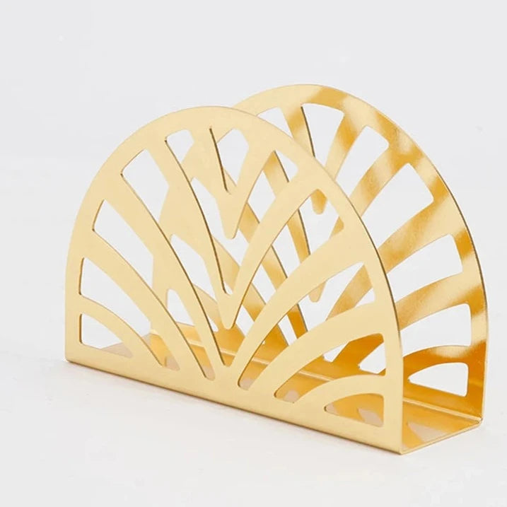 Porta Guardanapo Gold, feito em metal resistente com acabamento dourado, é perfeito para adicionar um toque de sofisticação às suas refeições.
