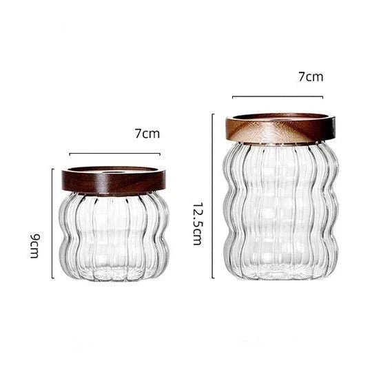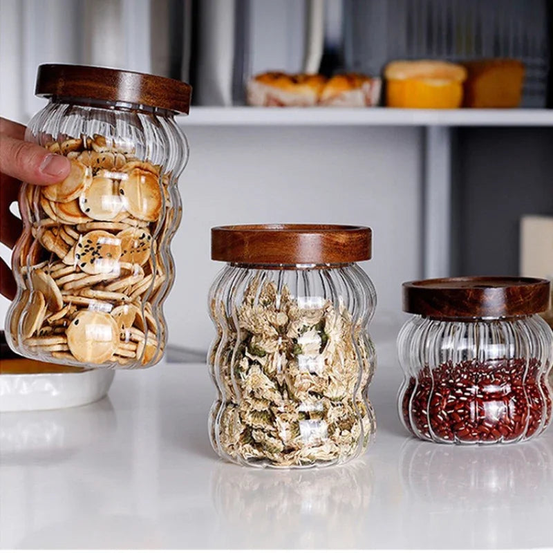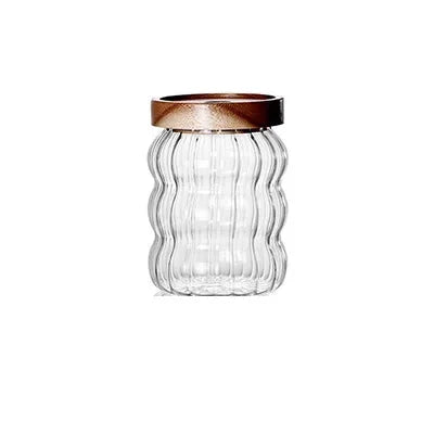 Pote de Vidro Canelado com Tampa de Madeira combina design sofisticado e funcionalidade. A vedação hermética preserva a frescura dos alimentos, enquanto a tampa em madeira adiciona um toque natural e elegante à sua cozinha.