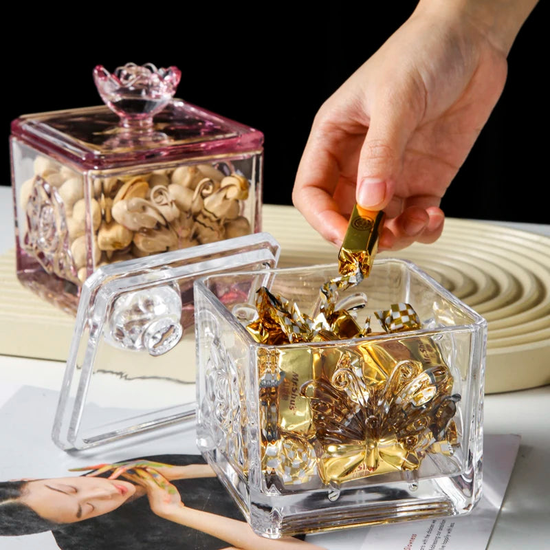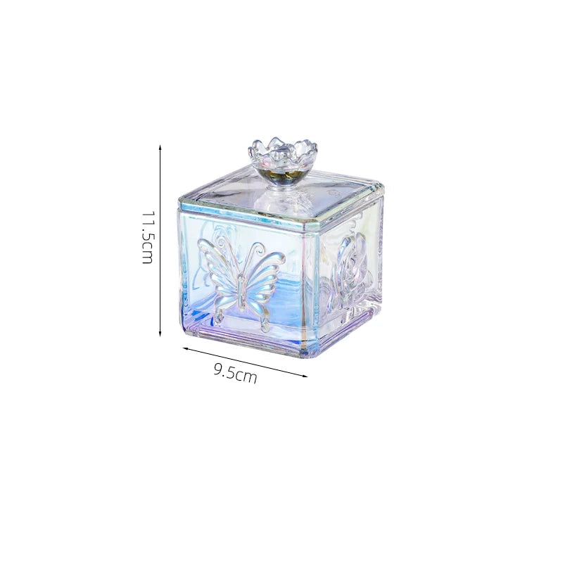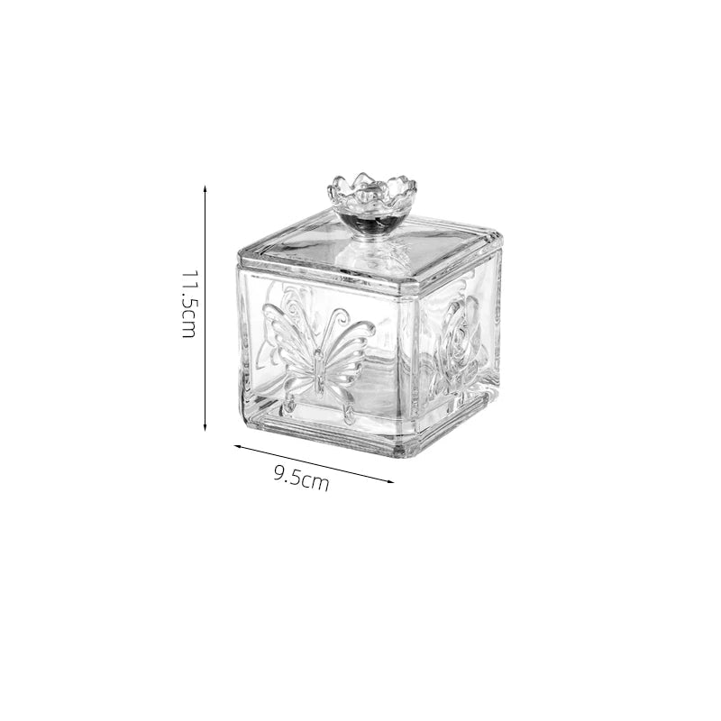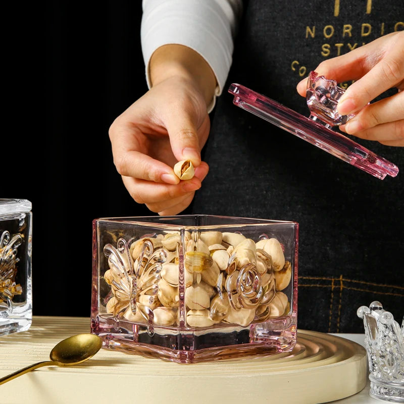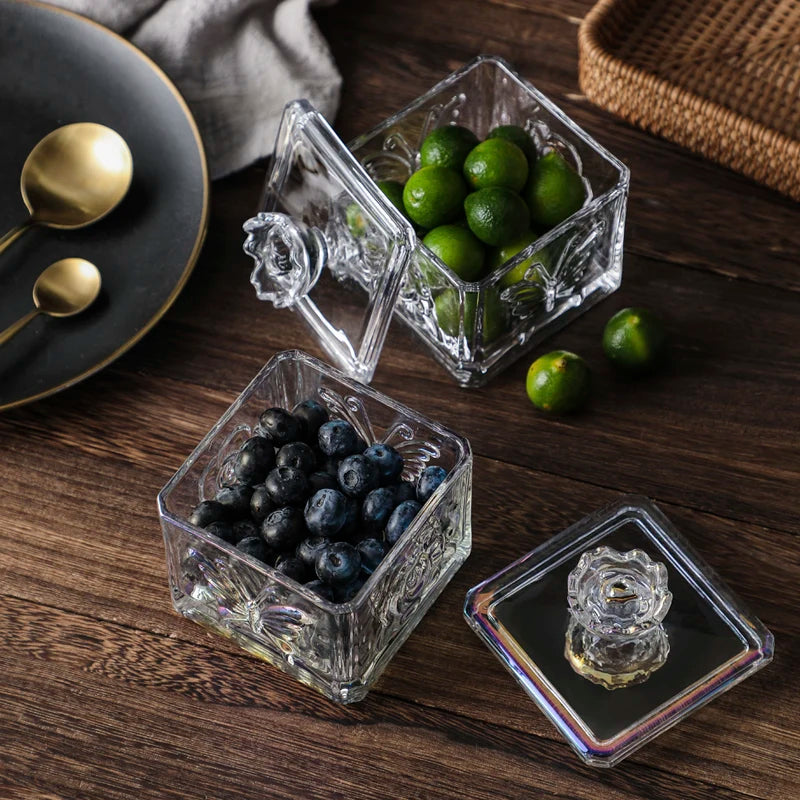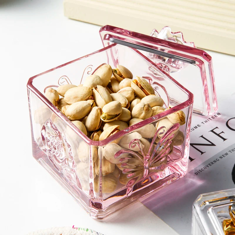 Pote Quadrado de Vidro Borboleta Esculpida para Alimentos