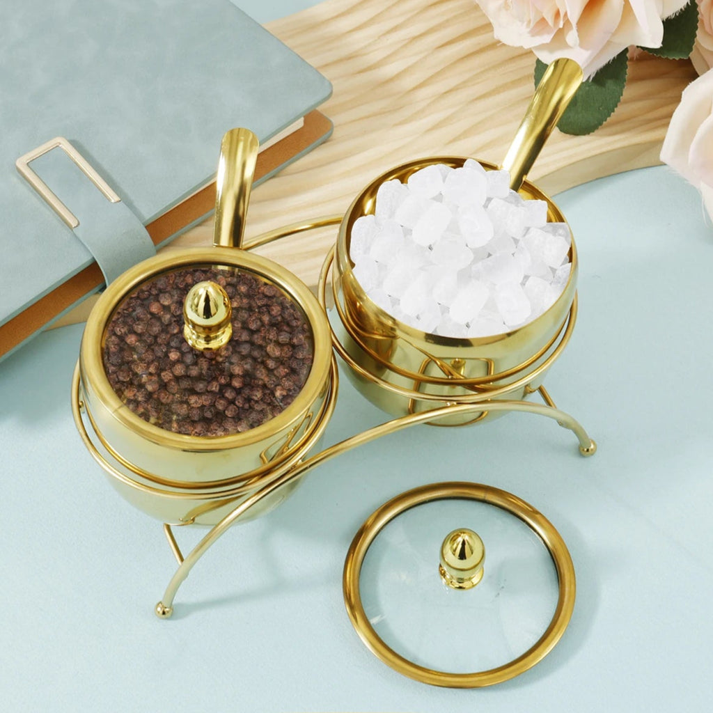 Design Sofisticado: Com acabamento dourado e linhas modernas, estes potes adiciona um toque de luxo à sua cozinha.