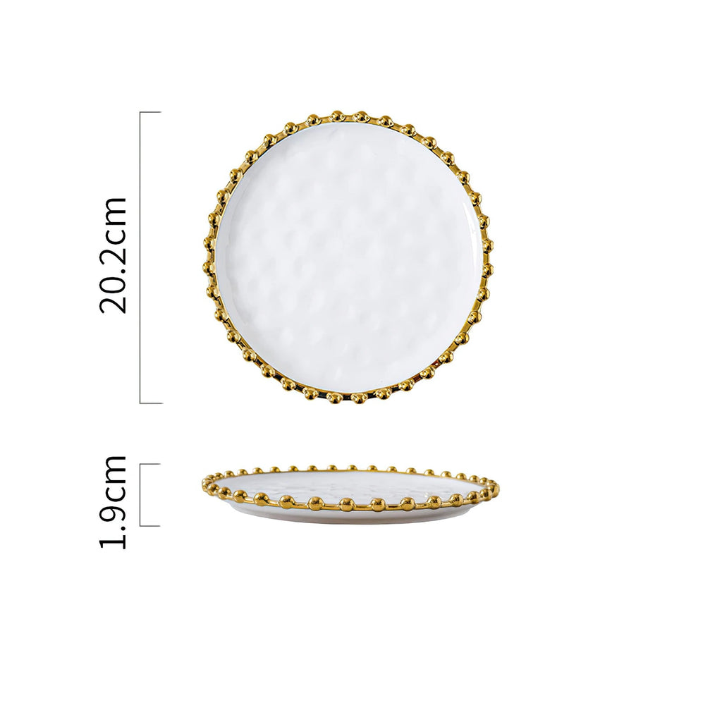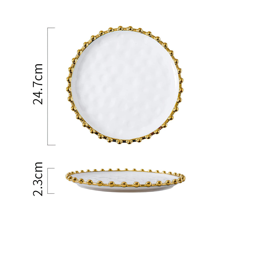 Eleve suas refeições com o nosso Prato de Cerâmica com Relevo e Borda Dourada, uma peça que combina arte e funcionalidade, ideal para ocasiões especiais e jantares sofisticados.