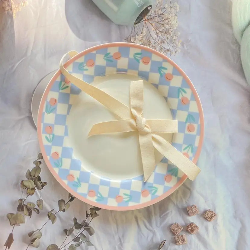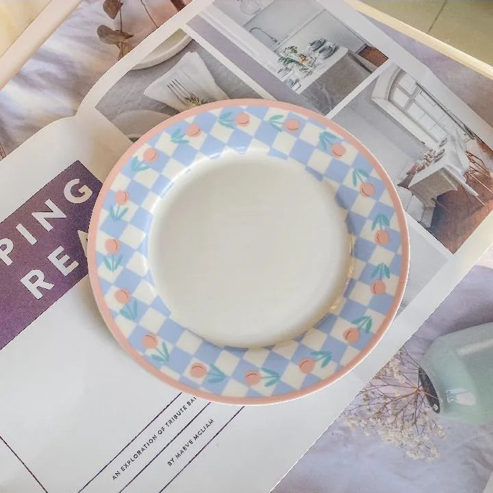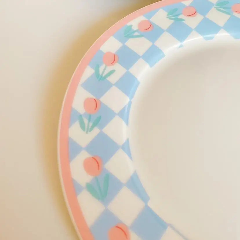 Design Exclusivo: Estampa xadrez azul e branco com detalhes de tulipas, trazendo um toque de frescor e elegância à sua mesa.